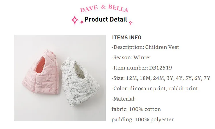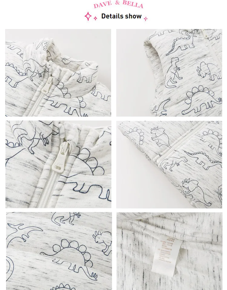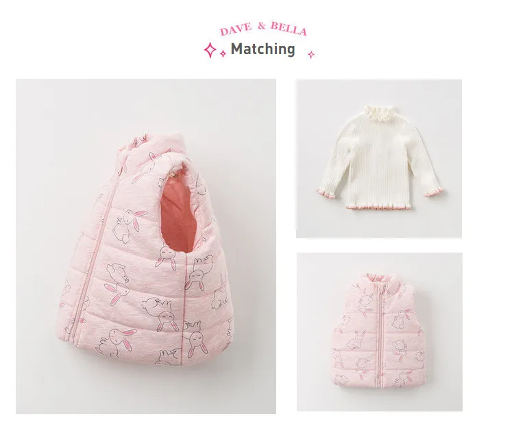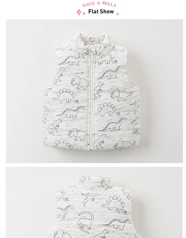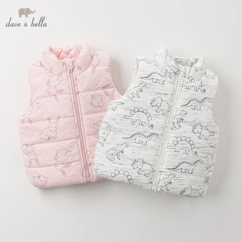 DB12519 dave bellaзимнее Детское пальто унисекс на молнии с милым рисунком из мультфильма; детский модный жилет без рукавов унисекс