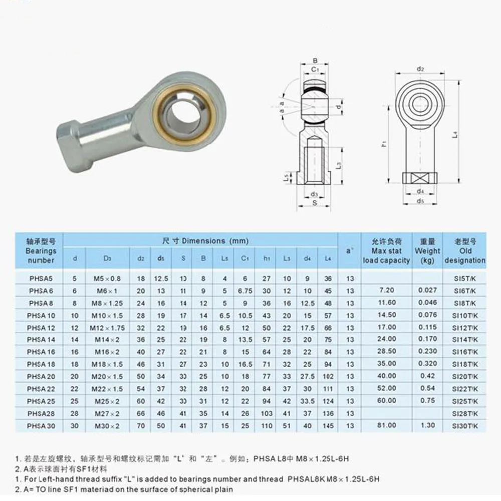 1 шт. 5 мм мама SI5(L)TK PHSA5L левосторонний шаровой шарнир метрич...
