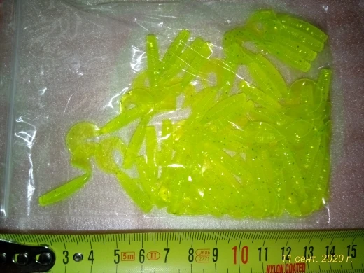 Хорошие твистерки. Маленькие как раз на окушка. Очень долгой была доставка, больше двух месяцев. Уже открыл спор, думал не получу, защита заканчивалась, но получил в последний день. Четко, до минуты. Спор отменил. Цвет больше прозрачный. Прошу прощения. Закажу еще.