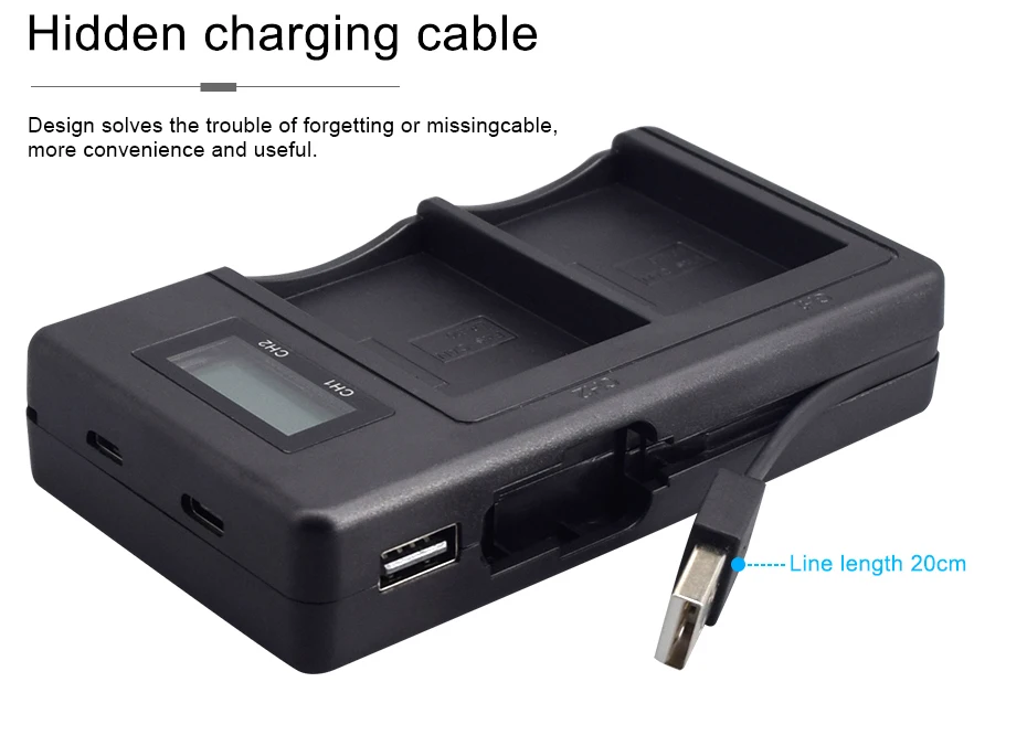 Зарядное устройство с двумя USB-портами и ЖК-дисплеем для камеры Ca...