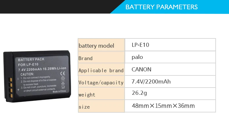 Аккумулятор PALO для фотоаппарата Canon EOS 1100D 1200D 1300D 2000D...