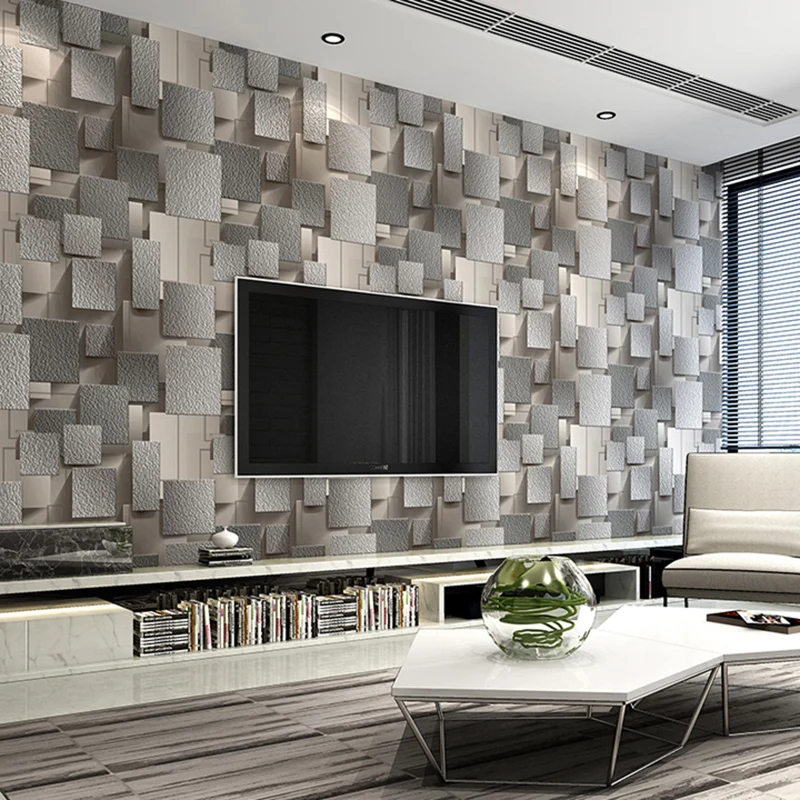 Современные 3D решетчатые нетканые замшевые обои для стен, рулон бумаги, 3D обои для гостиной, спальни, ТВ, фон для стен, Декор