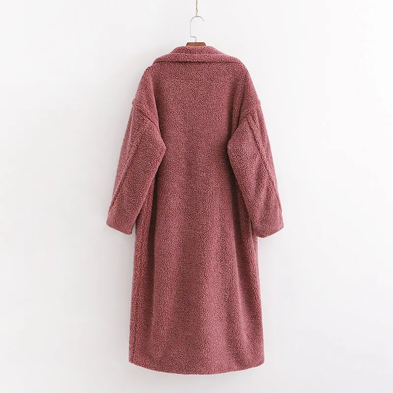 Розовое пальто из искусственного меха флисовое винтажное белое пальто Тедди длинная куртка пушистый ворсистый кардиган размера плюс пальто женское зима 2019