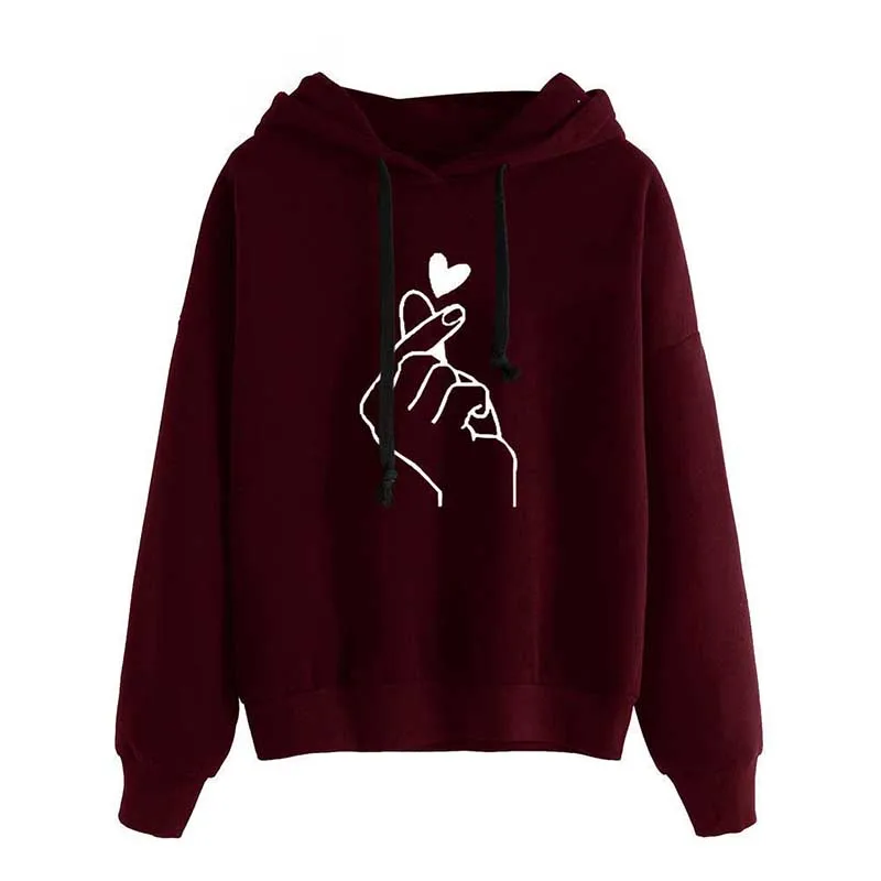 Женская толстовка с капюшоном, топы, Kpop, Finger Heart Love, с рис...