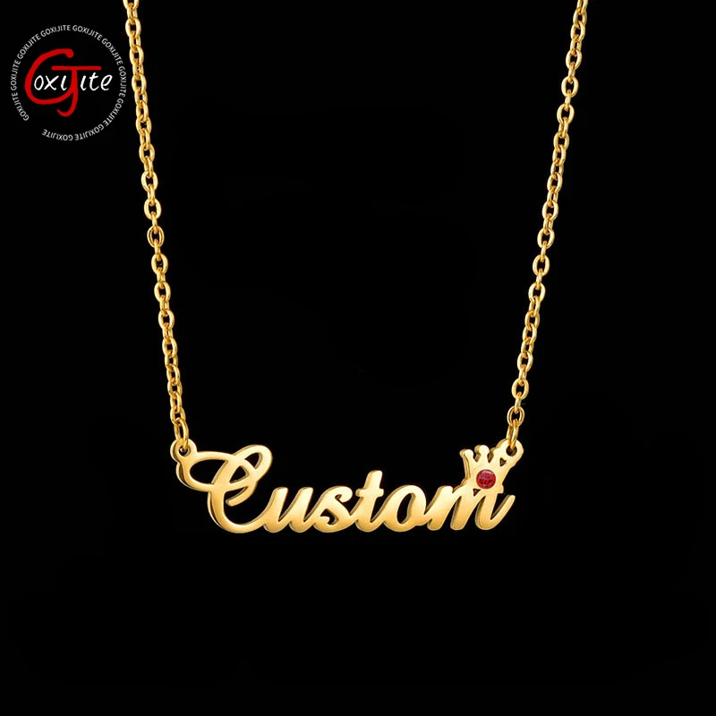 Goxijite ожерелья с именем на заказ из нержавеющей стали, ожерелье с камнем из циркония на день рождения с короной, индивидуальное название, ювелирный подарок на заказ