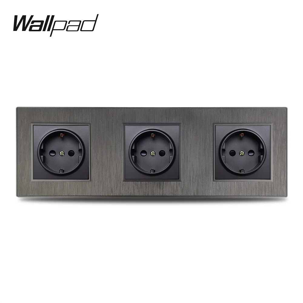Европейская Тройная электрическая розетка Wallpad S6, настенная розетка черного, серебристого, золотого цвета из матового поликарбоната, пластиковая, имитирующая алюминий