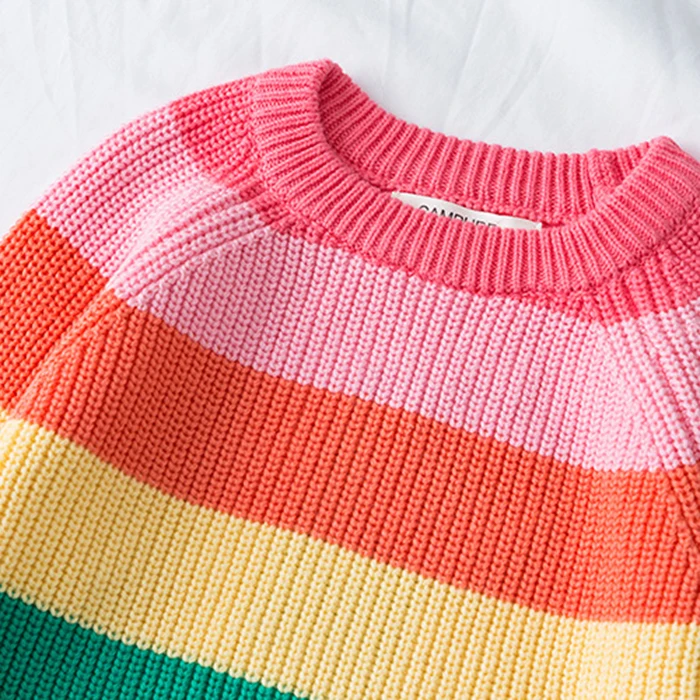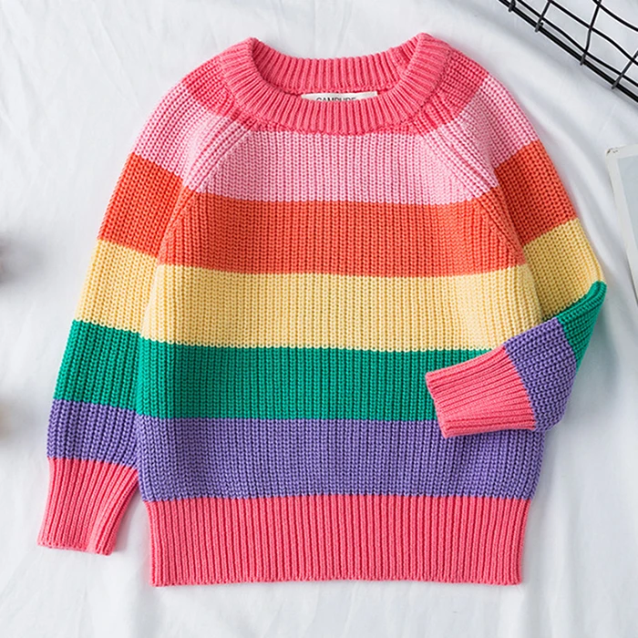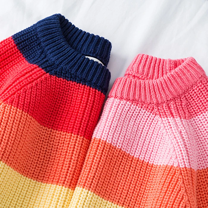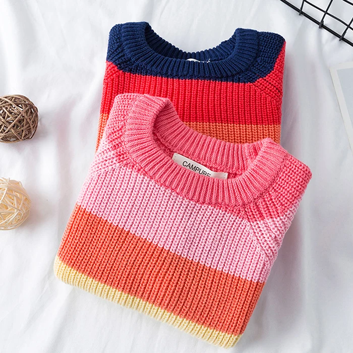 Вязаные топы в полоску для маленьких мальчиков и девочек, Рождественский наряд, зимняя плотная вязаная одежда для маленьких мальчиков, Свитера для девочек