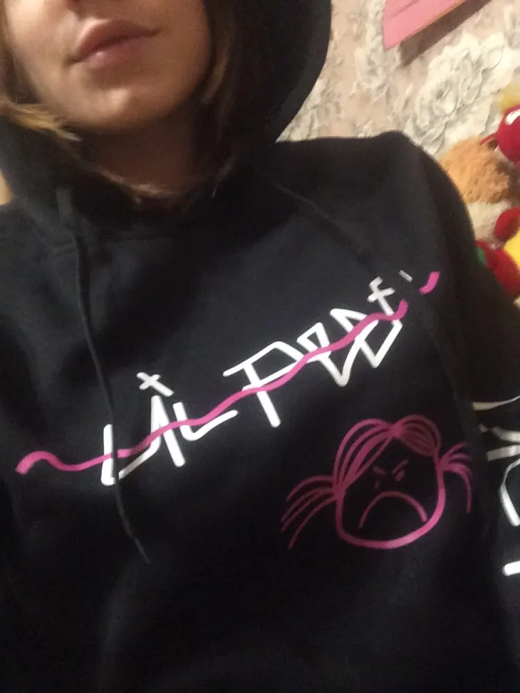 ужасно быстрая доставка, была в шоке. прошла всего неделя и уже прибыло в волгоград. ткань очень тёплая, на осень, зиму и весну пойдёт взяла М на рост 160,сидит отличночно рукава чуть чуть большеваты, мне даже нравится. получается как оверсайз. сделано аккуратно, принт качественный, цвет тёмно-фиолетовый. вообщем очень понравилось.
