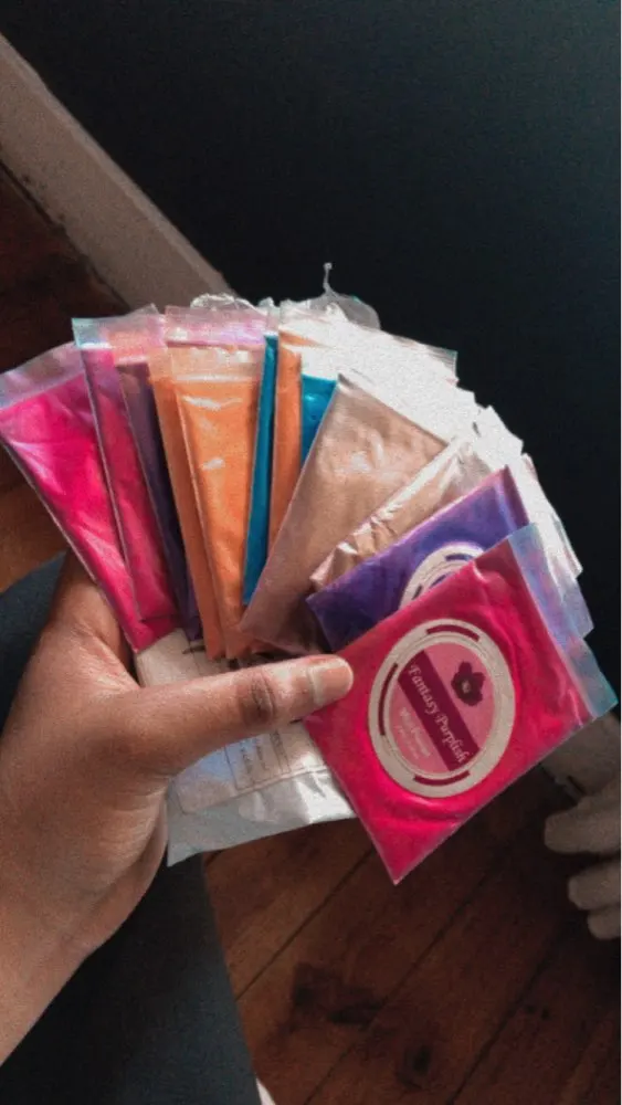 Охрррренеть конечно какая долгая доставка. Скорее всего из-за новогодних праздников. Больше двух месяцев ожидания. Номер не отслеживался. Правда продавец норм, всегда отвечал, общался достойно. Что касается самого товара, тут без претензий. Порошок Сияет, переливается. Пойдёт.