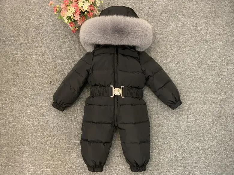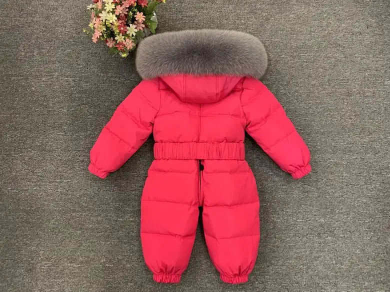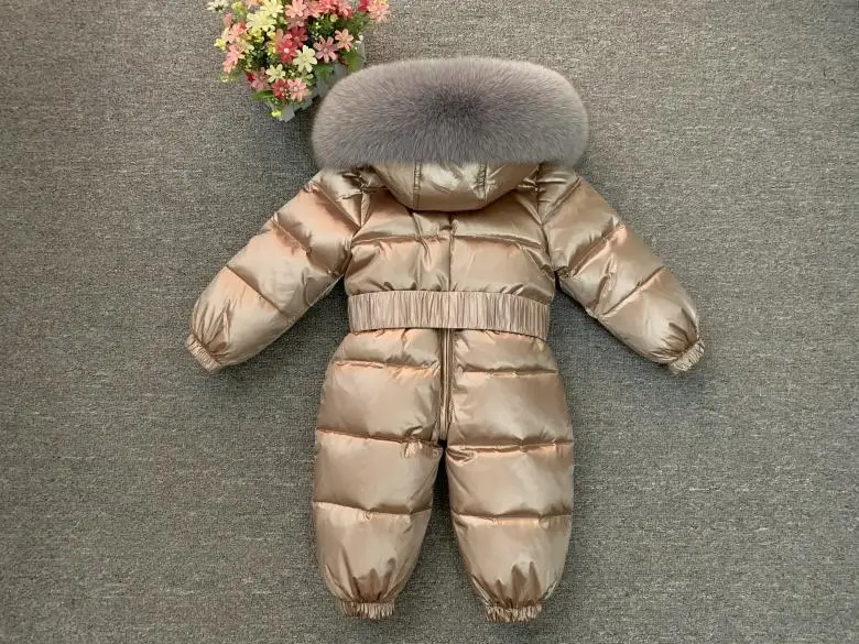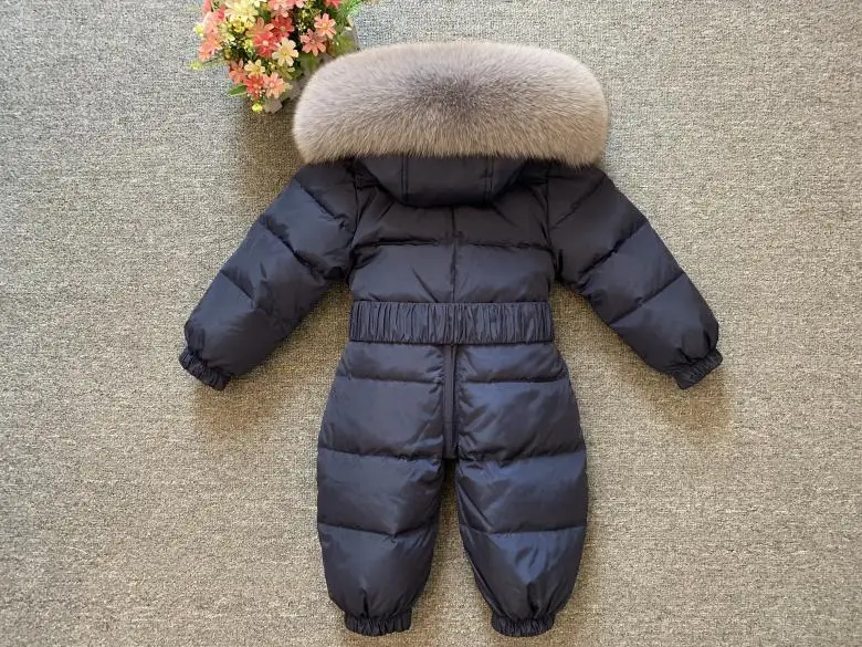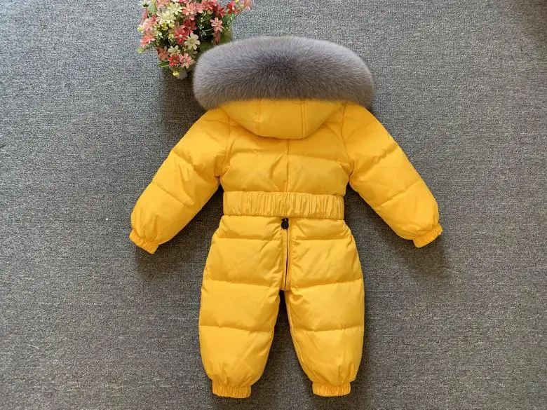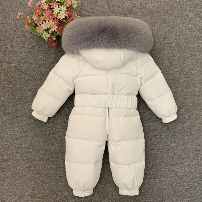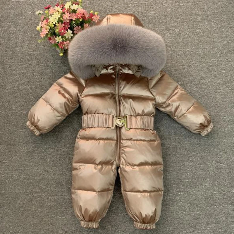 Роскошный Большой Детский комбинезон с воротником из натурального меха, толстый теплый пуховой комбинезон с капюшоном для маленьких мальчиков и девочек, цельный лыжный костюм