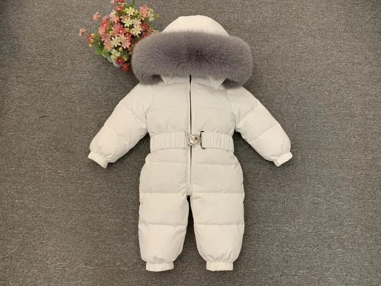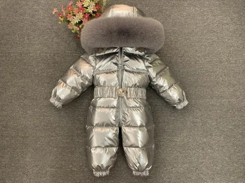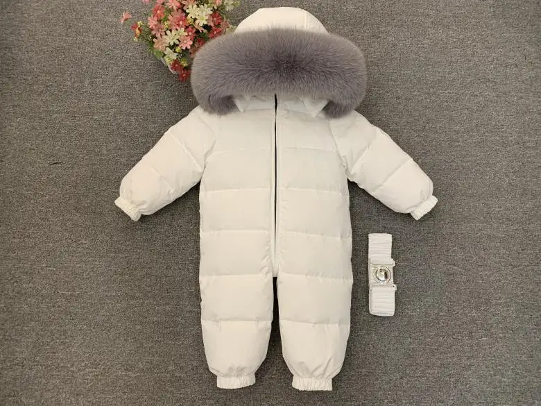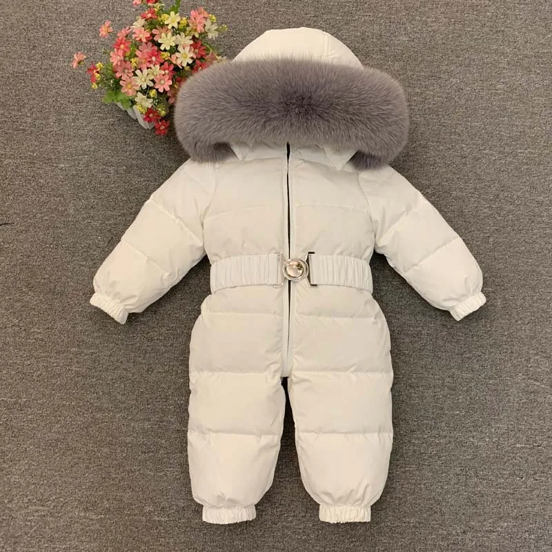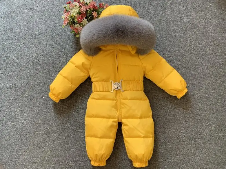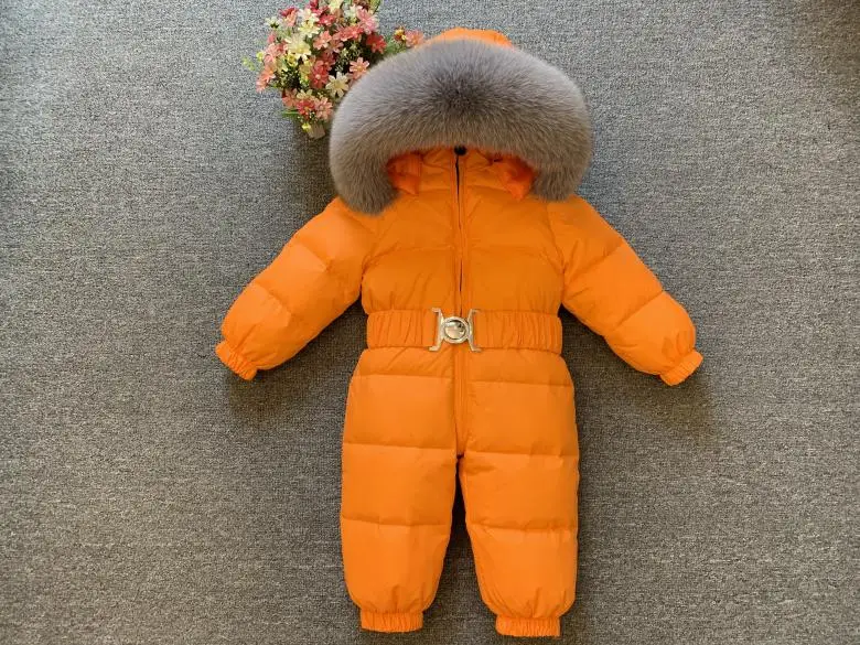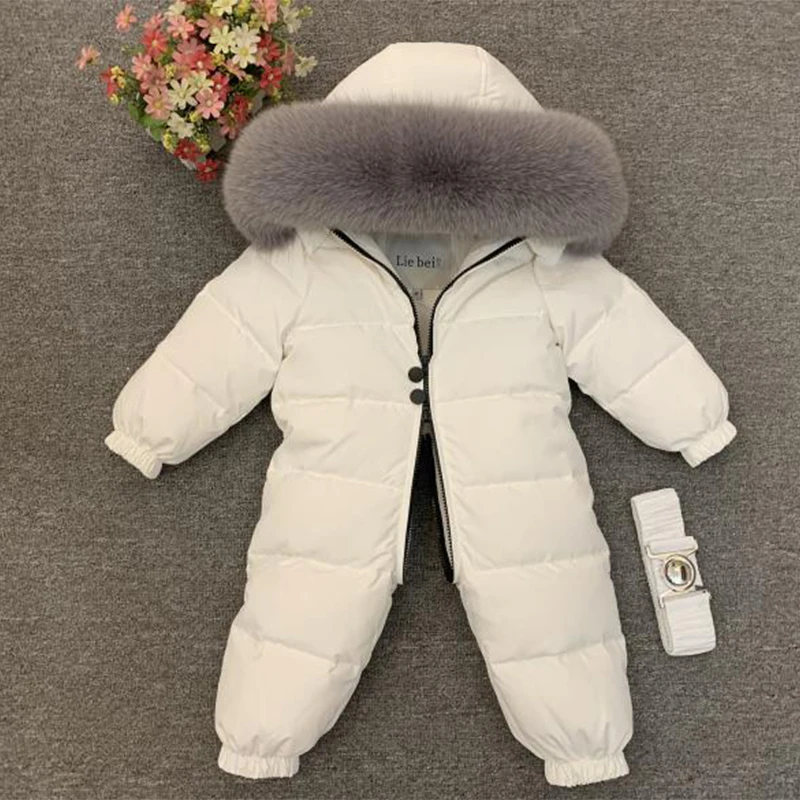 Роскошный Большой Детский комбинезон с воротником из натурального меха, толстый теплый пуховой комбинезон с капюшоном для маленьких мальчиков и девочек, цельный лыжный костюм
