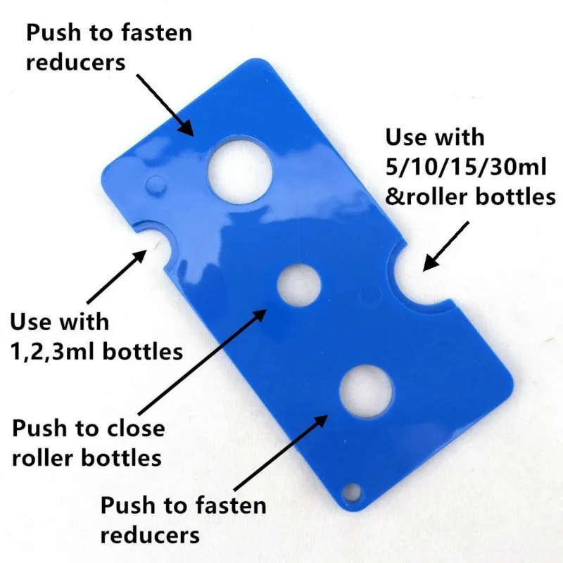 Посылка включает в себя: 2 шт.Описание:Идеальный инструмент для того, чтобы помочь вам удалить отверстие редуктора вставьте и нажмите на ваши крышки бутылки ролика на ваши эфирные масла бутылки.Подробности:Размер: 80*40*2 ммЦвет: Случайный