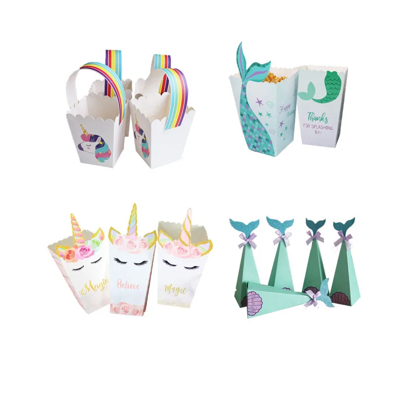 Принадлежности для вечерние с маленькой русалочкой, коробка для попкорна в виде единорога, женская сумка, украшение для детского дня рождения, свадьбы, вечеринки