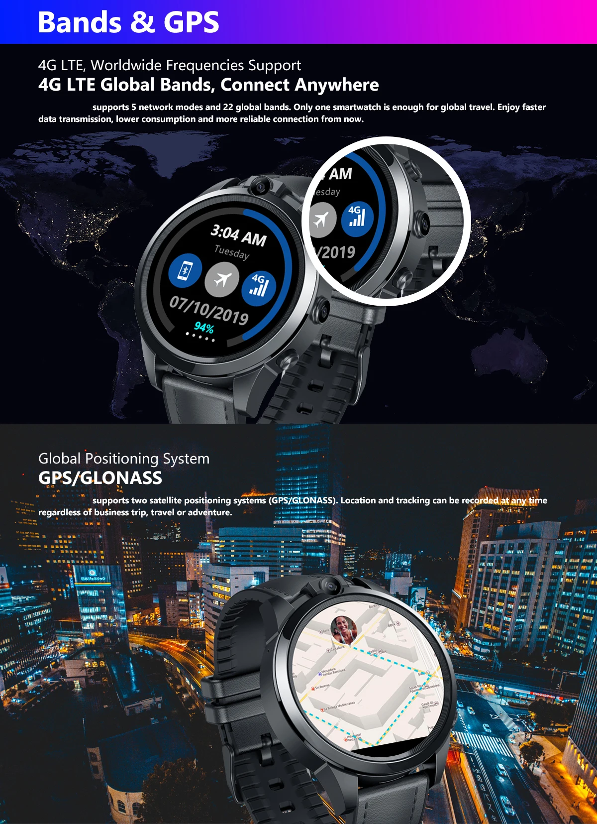 Мужские Смарт-часы с 4G, GPS, Wi-Fi, Android 7,1, MTK6739, 3 ГБ, 32 ГБ, 5,0 МП, двойная камера, пульсометр