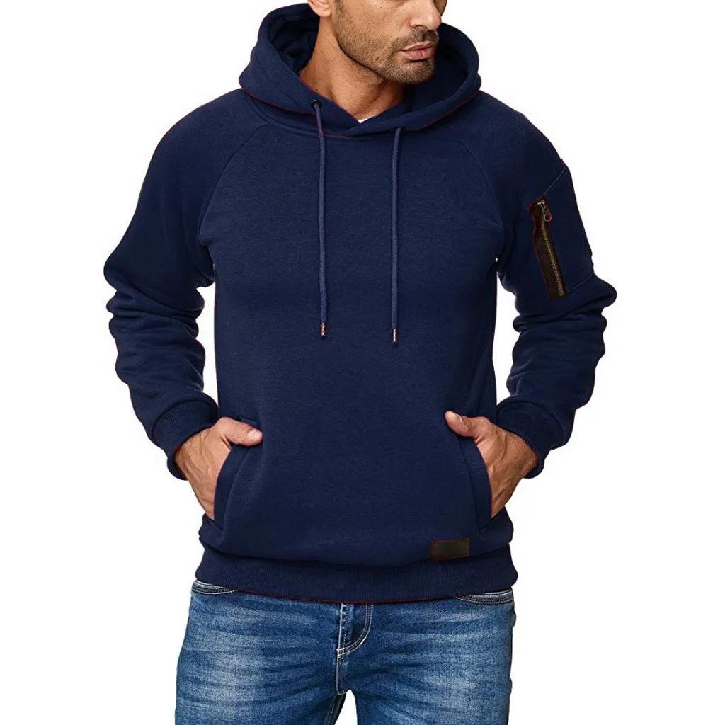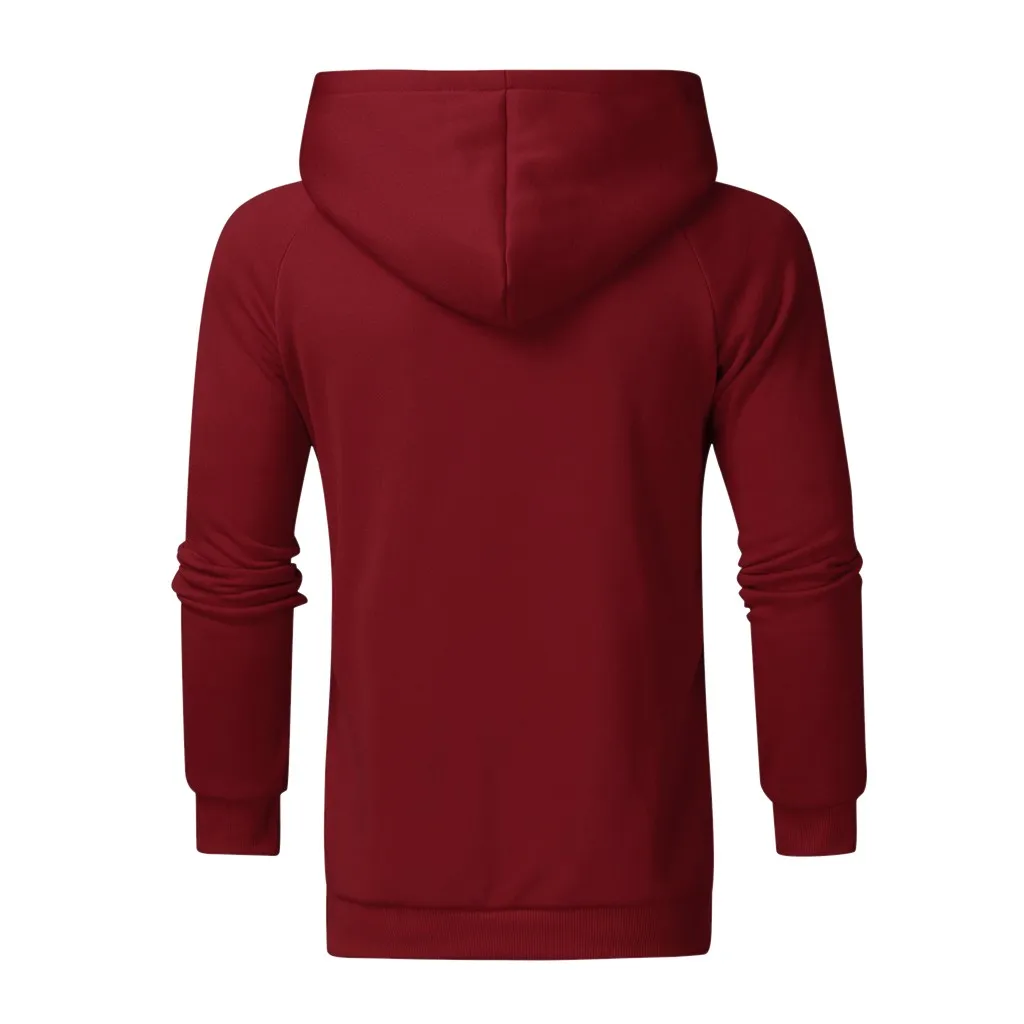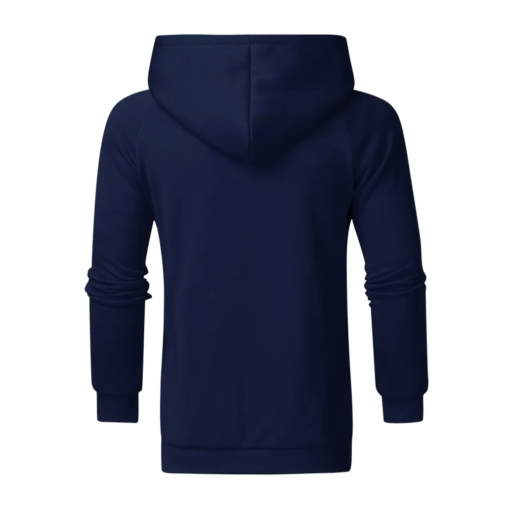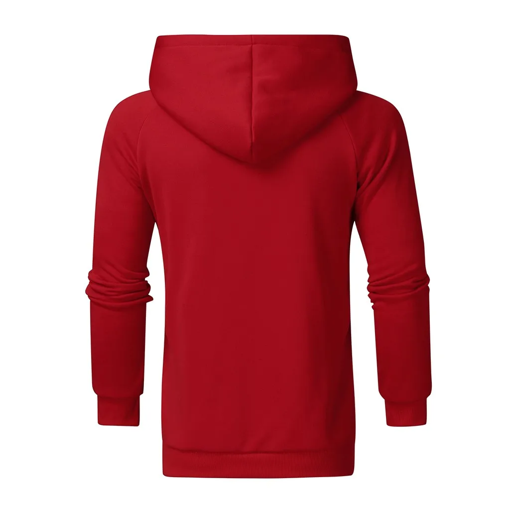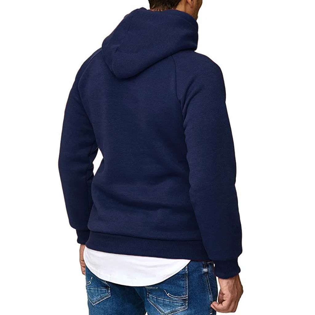 Мужская повседневная однотонная толстовка на молнии с длинным рукавом и карманами