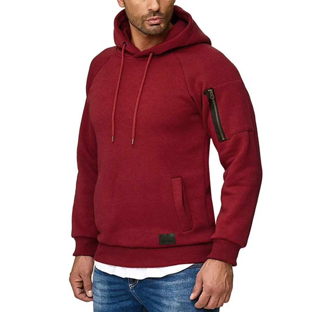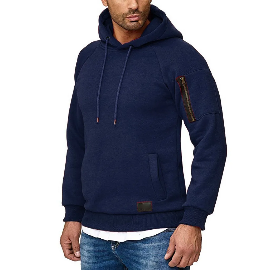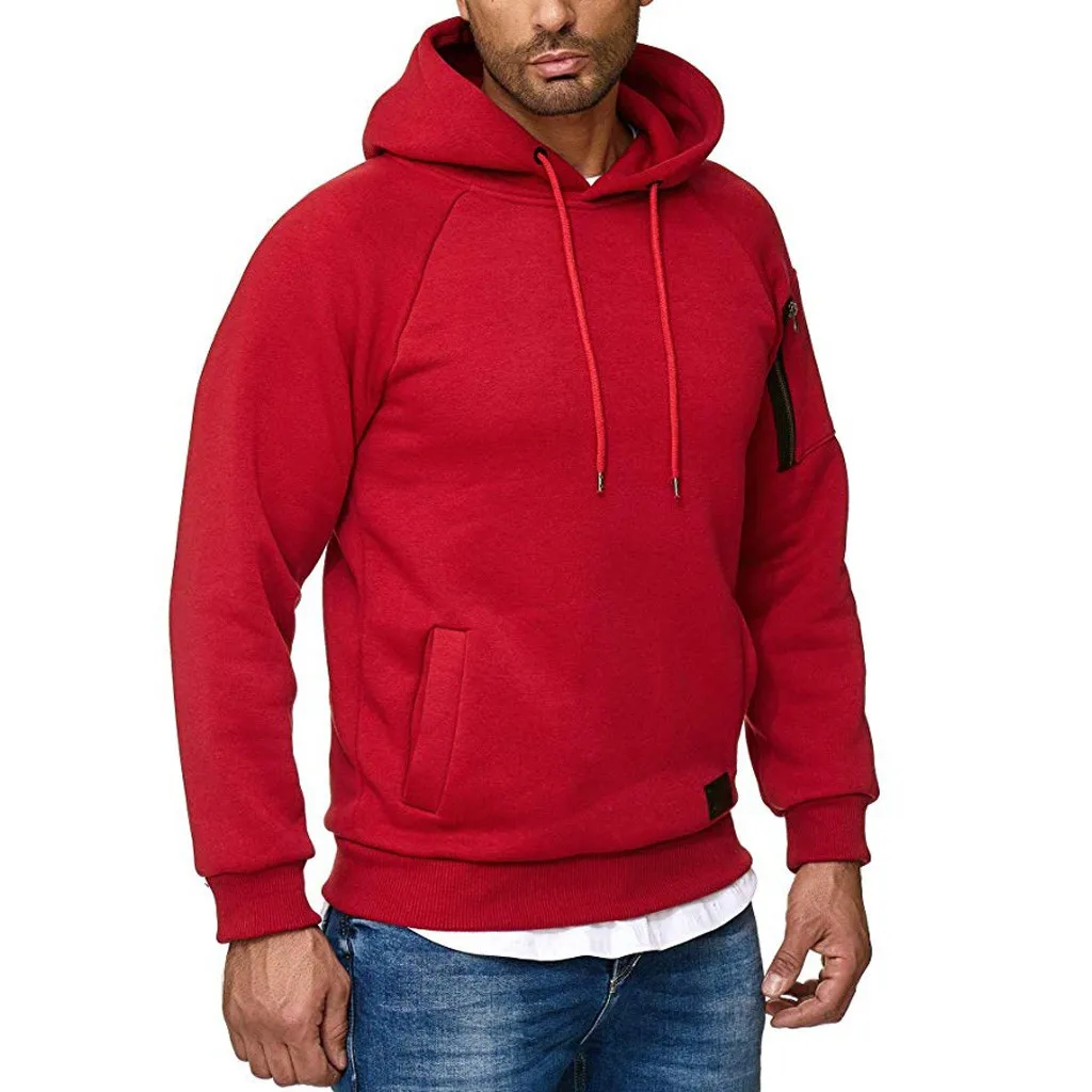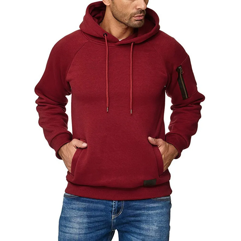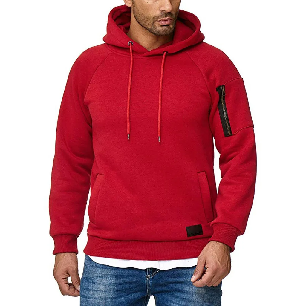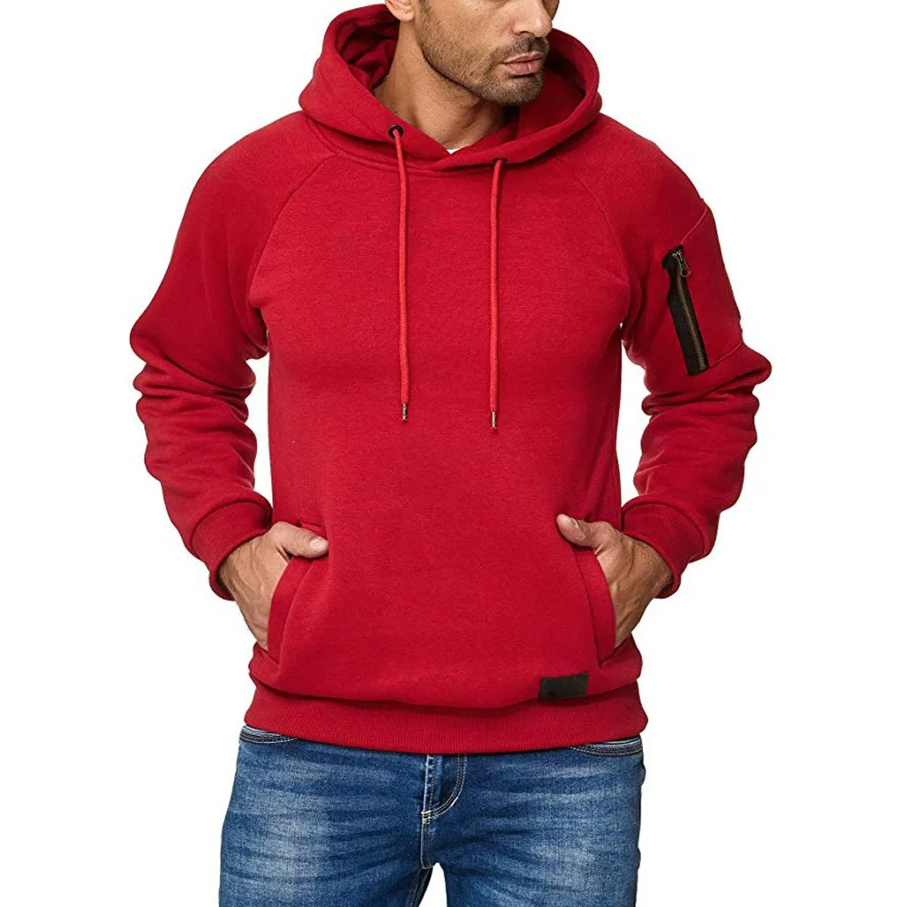 Мужская повседневная однотонная толстовка на молнии с длинным рукавом и карманами