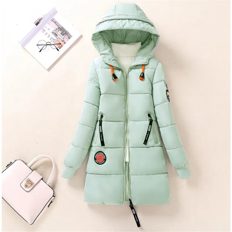 Женский длинный пуховик с капюшоном, зимнее пальто из парашютной ткани с толстой хлопковой подкладкой, базовое пальто, 2021