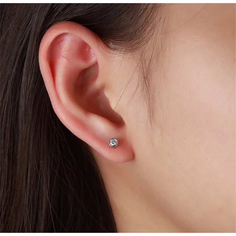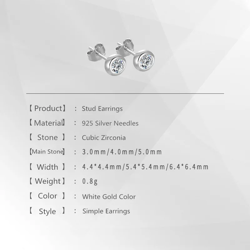 Серьги-гвоздики из серебра 925 пробы, с круглым фианитом, маленькие, CCE631