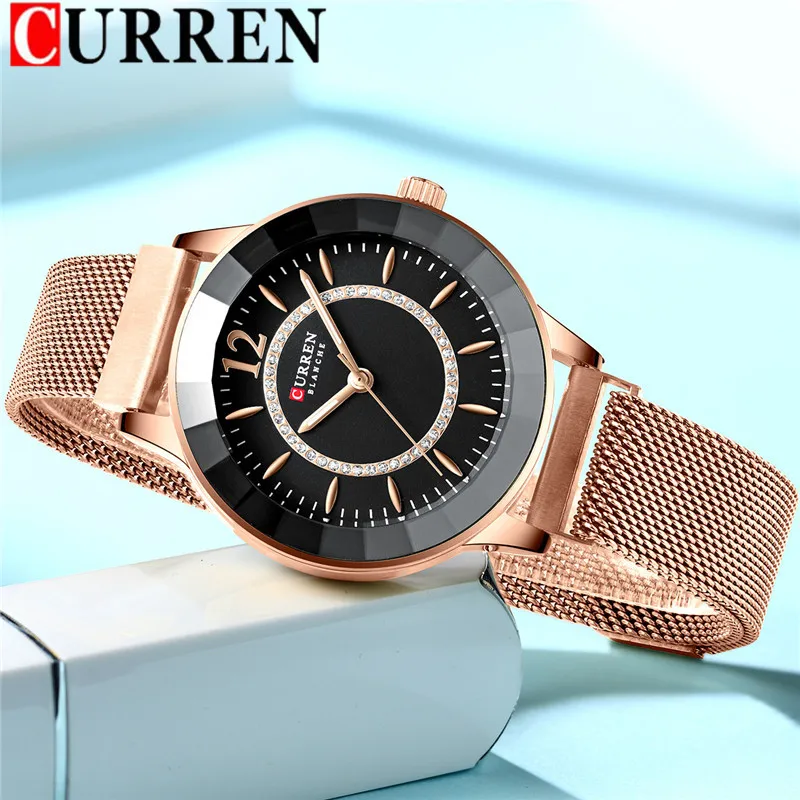 Часы CURREN женские кварцевые, роскошные модные блестящие повседнев...