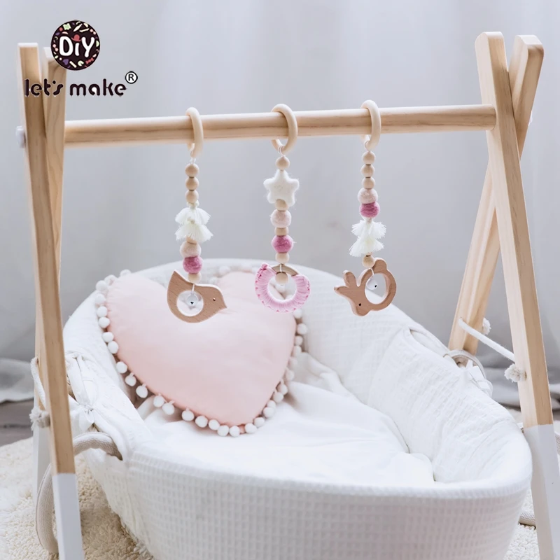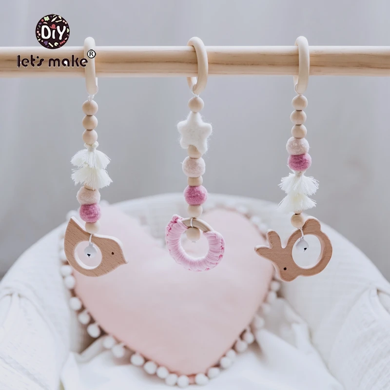 Деревянные детские игрушки Let'S Make, деревянные погремушки в виде животных для тренажерного зала, 3 шт.компл., деревянные Прорезыватели для зубов, детские игрушки