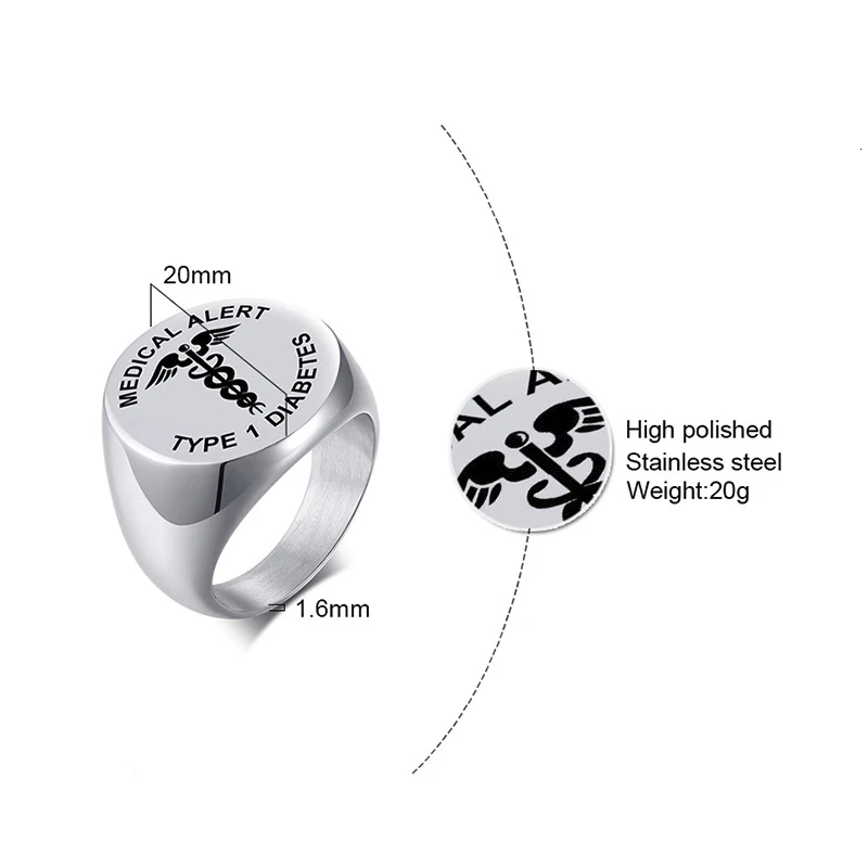 Медицинское кольцо с сигнализацией для мужчин тип 1 диабетическое медицинское кольцо с идентификацией для диабетиков при диабетиках 2 кольцо из нержавеющей стали ювелирные изделия