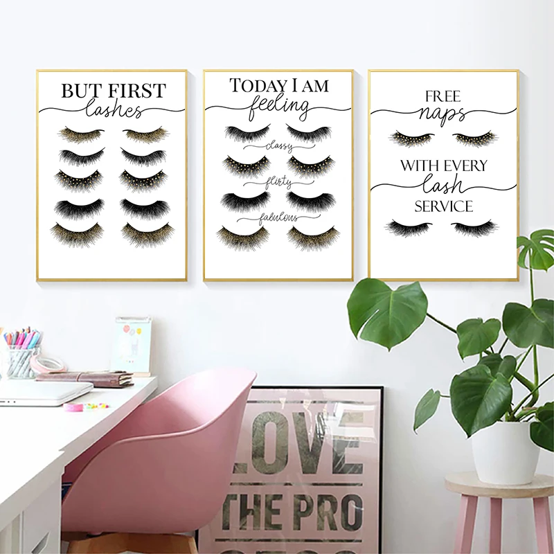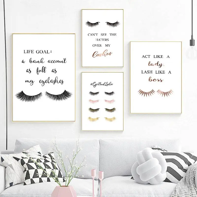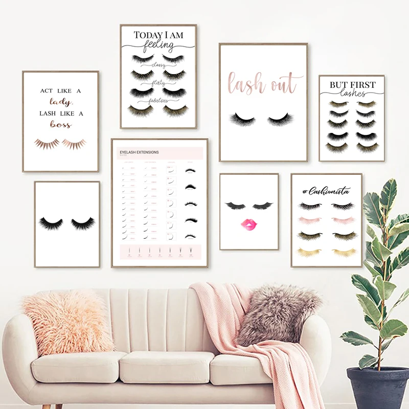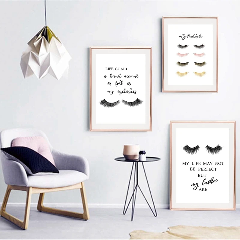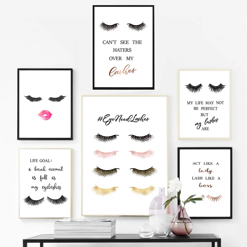 Модные плакаты с цитатами для наращивания ресниц, постеры для девушек, настенное искусство, холст, картины с ресницами, принты, макияж, салон, Настенный декор