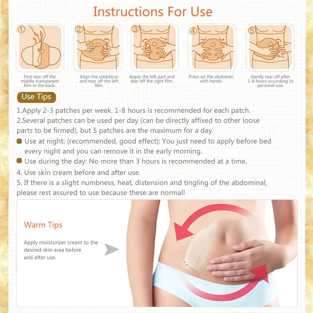 Особенности:Нежный и эффективный, не вредит вашему телуНет необходимости для занятий спортомНет необходимости для диетыДля уменьшения объема талии, живота, рук и ногТехнические характеристики:Срок годности: 3 годаСодержание нетто: 3 шт.Упаковочный лист:Пластырь для похудения * 1 коробка (3 шт.)
