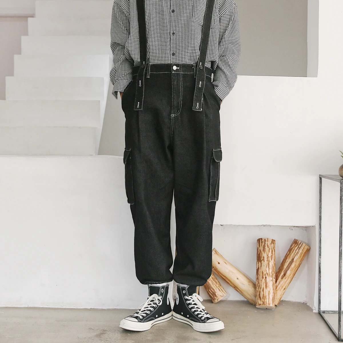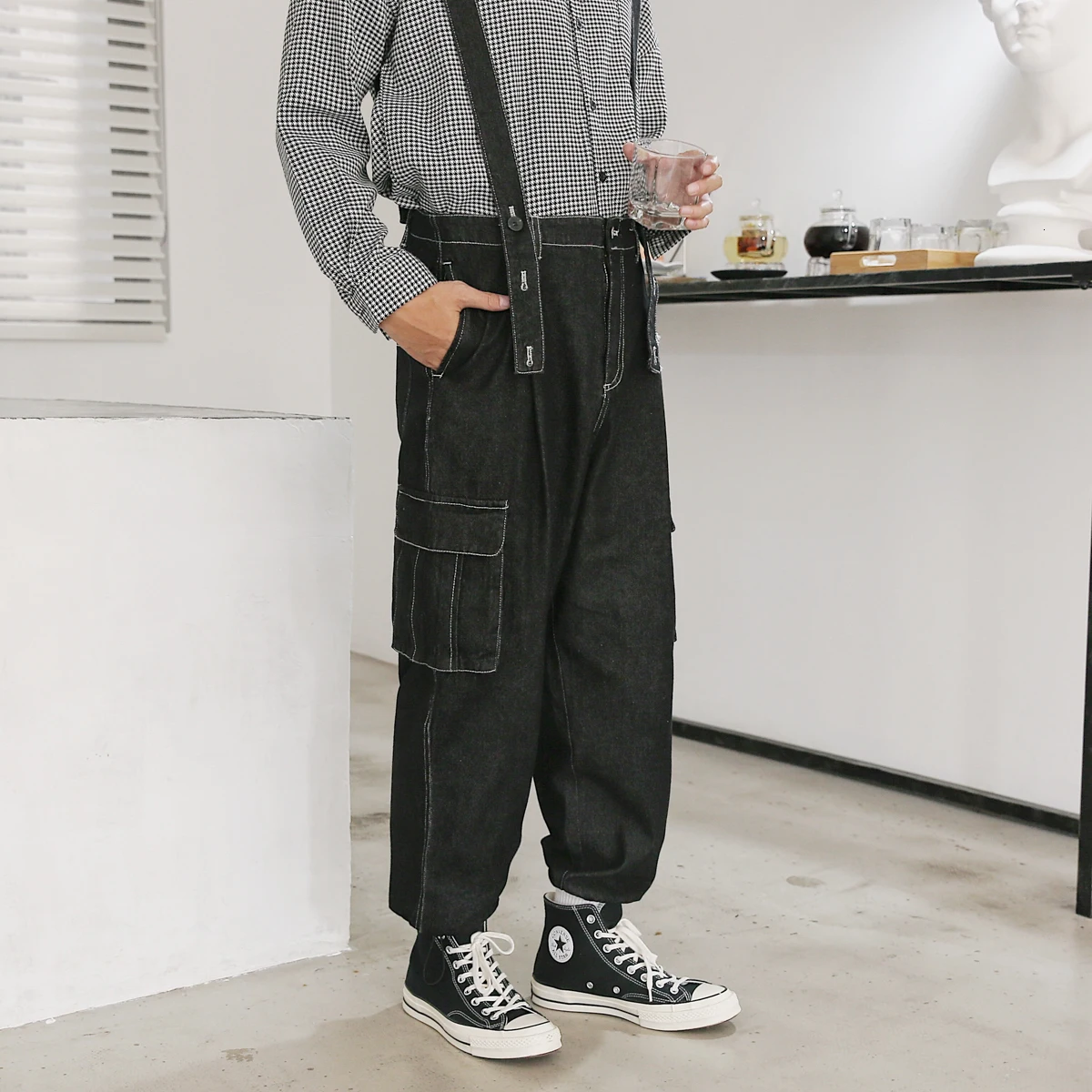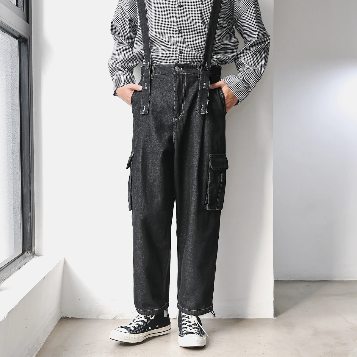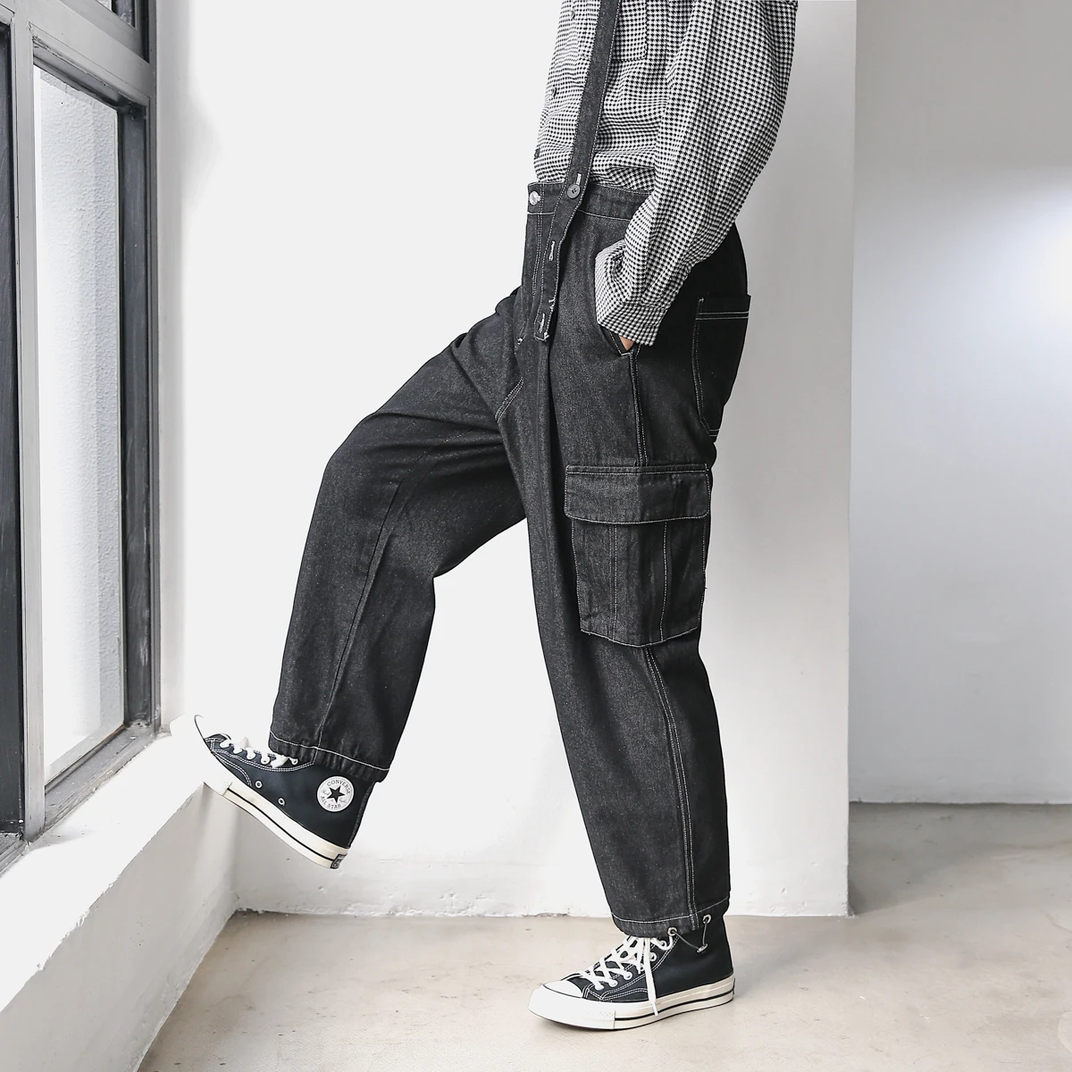Мужские свободные рабочие брюки, комбинезон, комбинезон, мужские комбинезоны, черныесиние мужские повседневные брюки, модные джинсы, 2021
