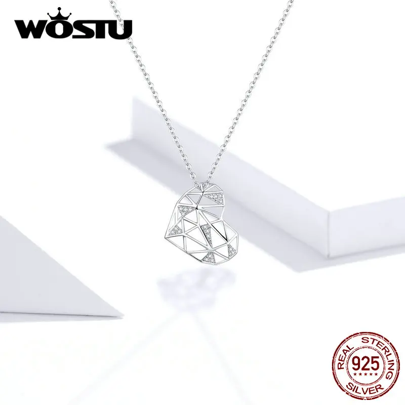 WOSTU колье из настоящего серебра 925 пробы с ажурным сердечком, длинная цепочка, романтичное свадебное ожерелье, ювелирные изделия CQN364