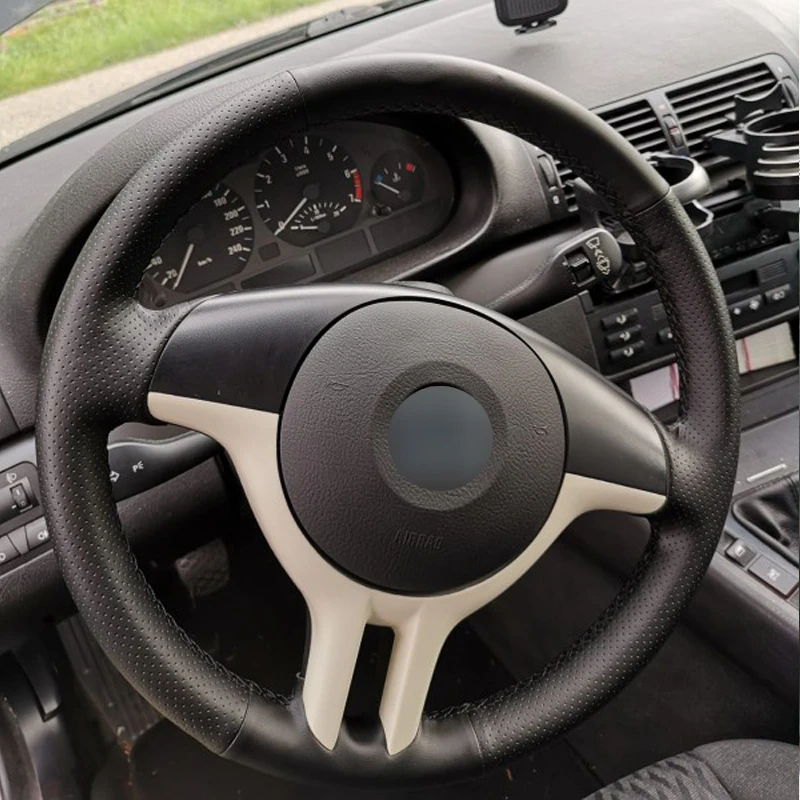 Сшитая вручную черная накладка на руль из натуральной кожи для BMW E39 E46 325i E53 X5