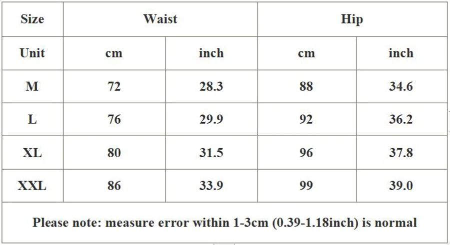 Таблица размеров