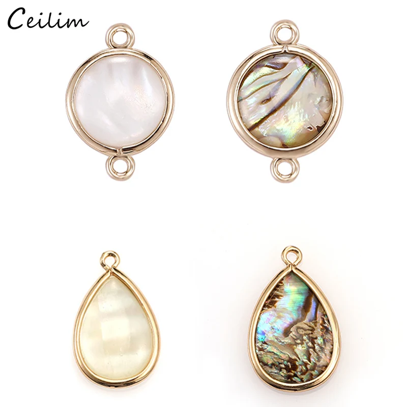 10 шт.лот Золотые круглые подвески в форме каплевидной ракушки, соединительные бусины с 2 отверстиями для изготовления сережек, браслетов, ожерелий, фурнитура для ювелирных изделий своими руками