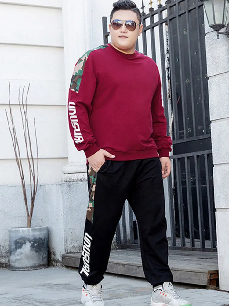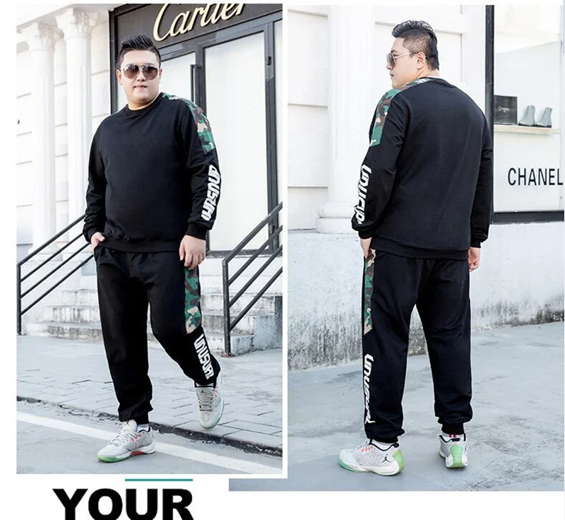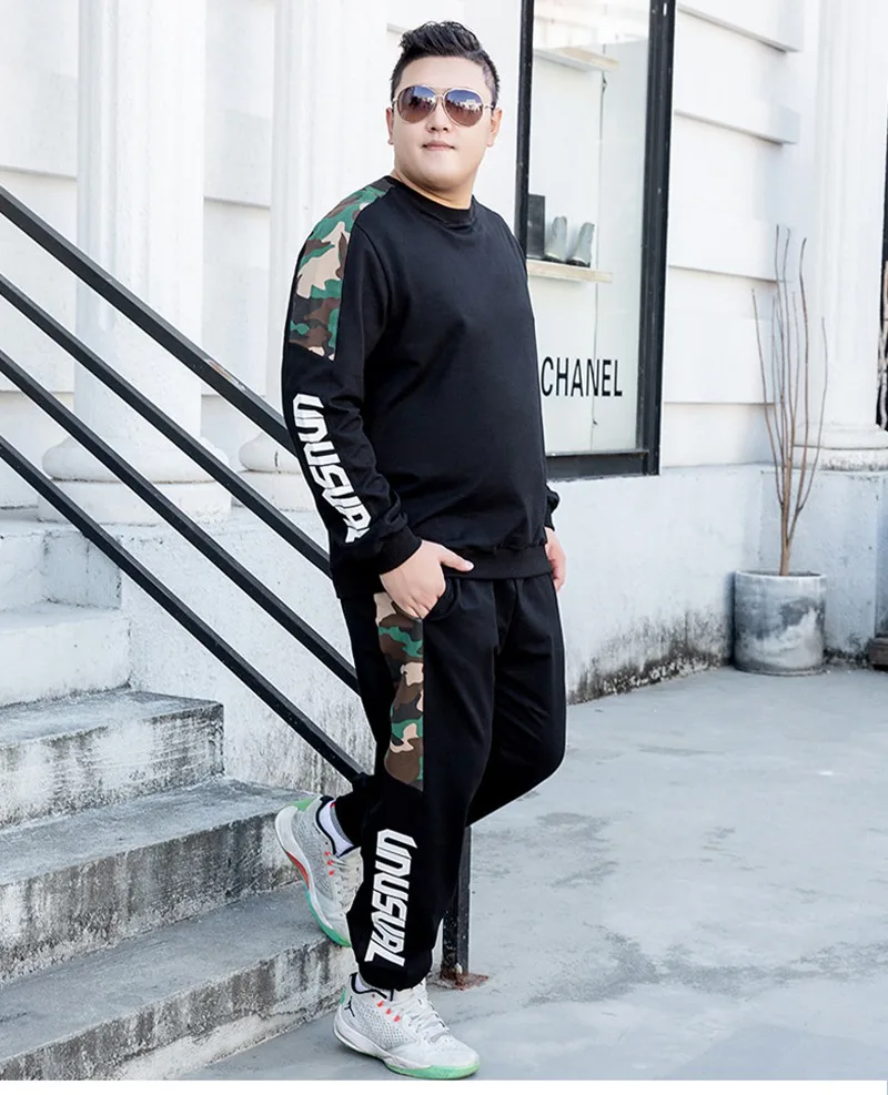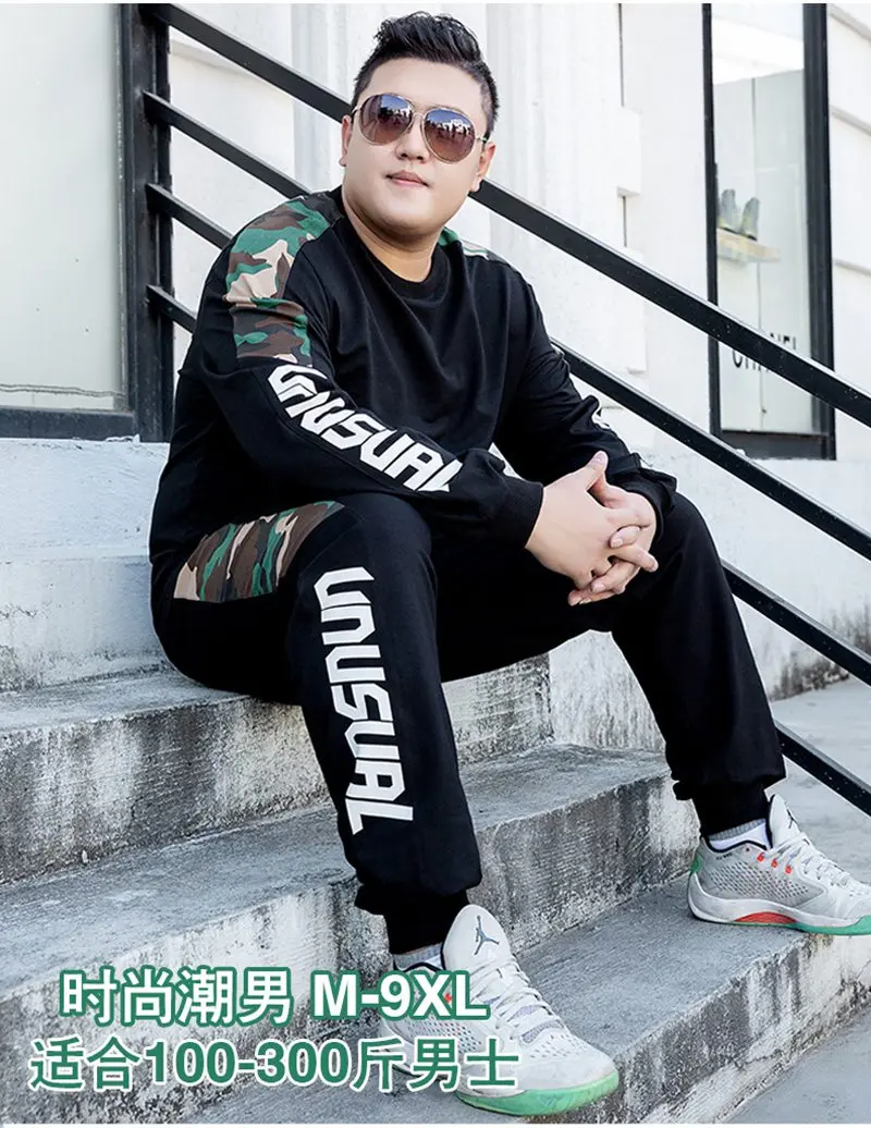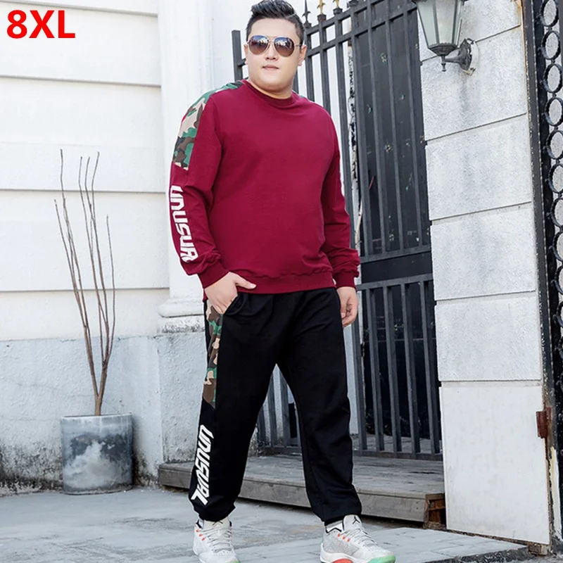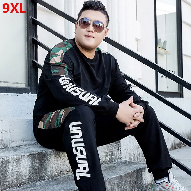 Весенне-осенний тренировочный костюм, мужской спортивный костюм из двух предметов, эластичный, размера плюс, 8XL, 7XL