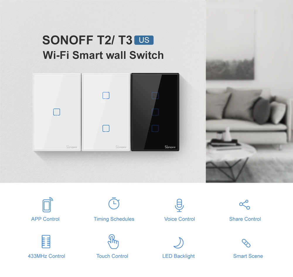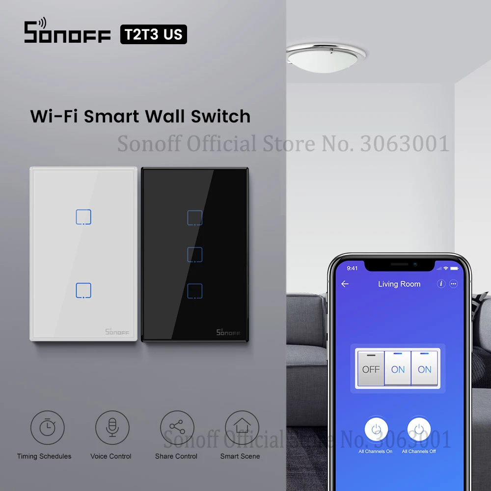 Умный настенный переключатель SONOFF T2/ T3 US Wifi можно управлять удаленно с помощью телефона, а устройства, подключенные к переключателям, могут работать независимо.Работает с Amazon Alexa и Google Assistant, который позволяет включать или выключать ваши устройства с голосовой командой, идеально подходит для тех, кто должен обрабатывать много домашней работы одновременно.Небольшой кран для более легкого управления. Установите время для устройств, и переключатели помогут вам включить или выключить их автоматически. Портной смарт-сцена для ваших приборов. Просто установите событие, чтобы вызвать одно устройство SONOFF или группы устройств с помощью нажатия на вашем телефоне.Ваши устройства не будут работать из-за аномальной сети Wi-Fi, управление локальной сети, следовательно, разработано, чтобы убедиться, что они могут нормально работать.Примечание 1: SONOFF T2/T3 US Поддерживает пульт дистанционного управления 433 МГц, рекомендуется использовать SONOFF RM433.Примечание 2: SONOFF T2/T3 US имеет границу и не легко гаснуть.Примечание 3:T2 белый и T3 черный, пожалуйста, выберите цвет, который вам нравится.