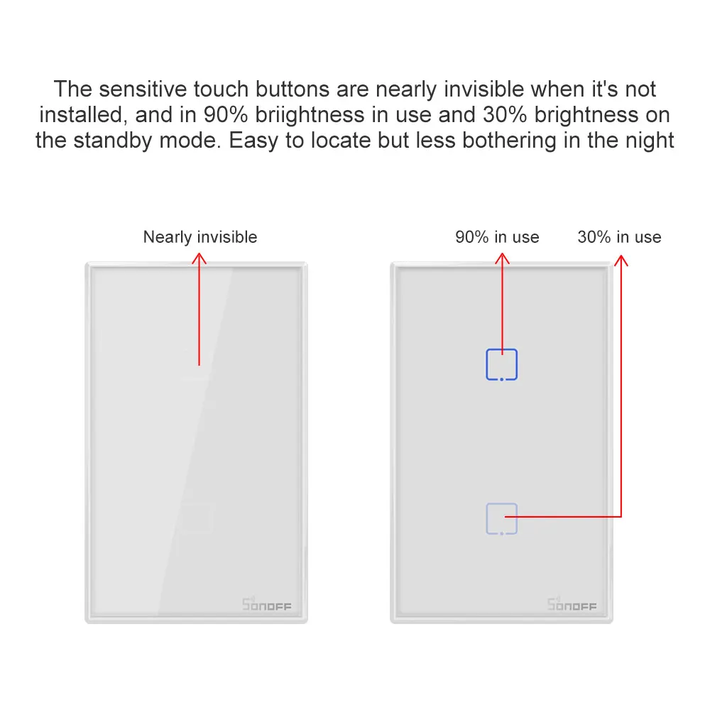 Умный настенный сенсорный выключатель SONOFF T2T3, США, Wi-Fi, с границей, дистанционное управление на 123 клавиши, Wi-Fi выключатели света для автоматизации умного дома