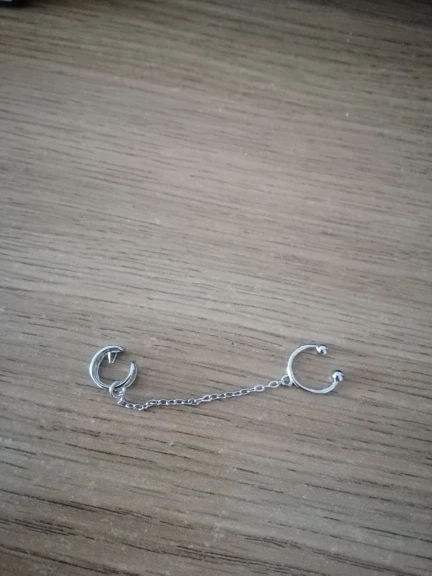 Осталась довольна заказом. Не буду первой, сказав, что ожидала более длинную цепочку, но, тем не менее, на ухе эта длина смотрится очень хорошо. На ухе все держится, ничего не слетает, но это зависит, я думаю, от каждого конкретного человека. Дефектов нет, товар качественный. Однозначно 5 из 5. Рекомендую)