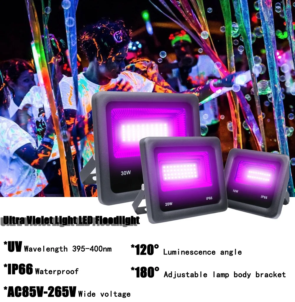 ANJOET УФ Светодиодный прожектор 10 Вт 20 Вт 30 Вт 50 Вт ультрафиолетовый свет 395 нм лампы 85-265 в флуоресцентная лампа черный свет для Хэллоуина вечеринки выпускного