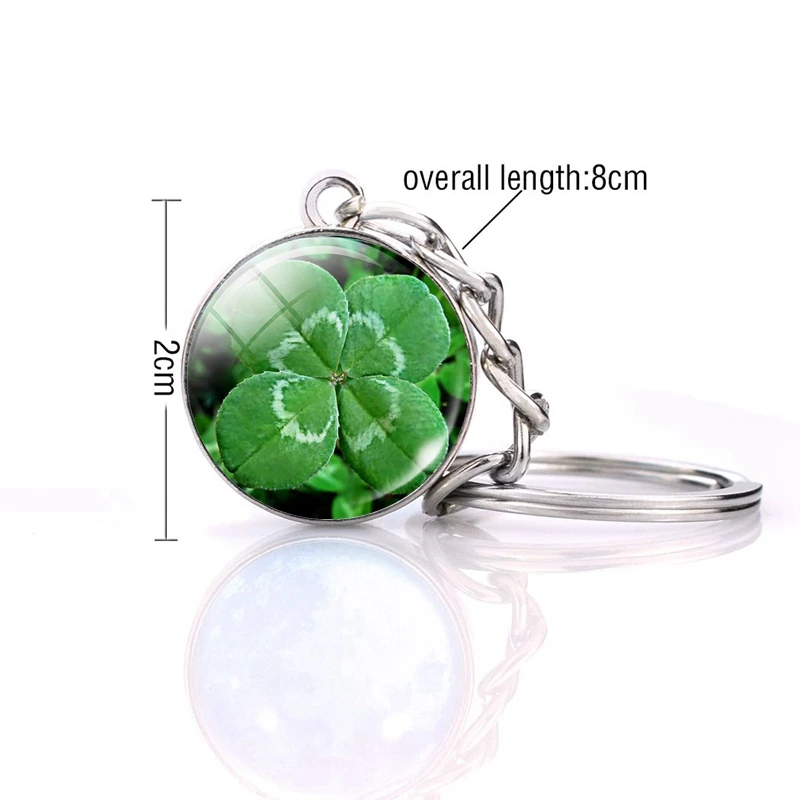 Брелок с четырехлистным клевером, стеклянный двухсторонний кулон с ...