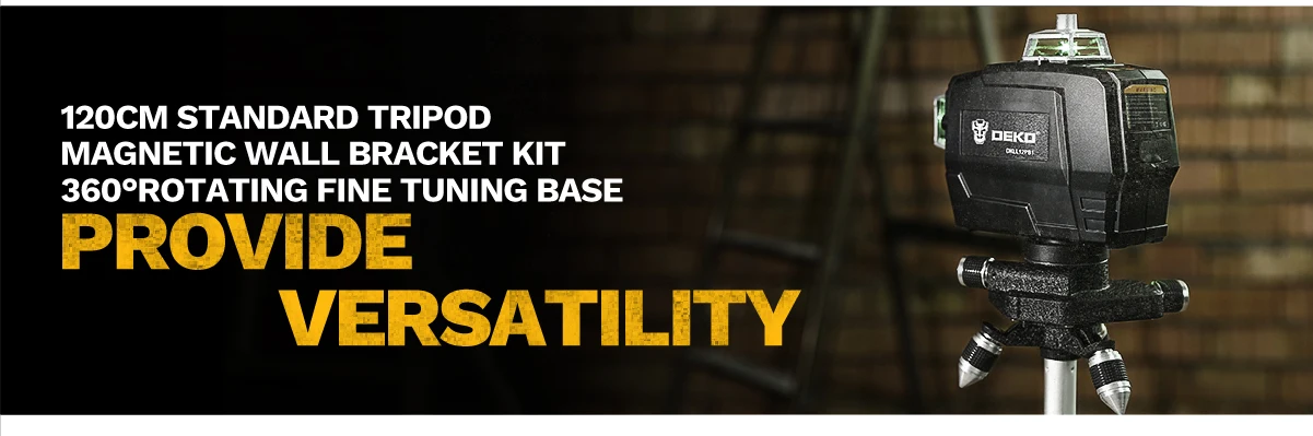 Лазерный уровень DEKO DKLL12PB1, 12 линий, зеленый лазер, Горизонтальные и вертикальные перекрестные линии с автоматическим штативом Выравнивающая камера