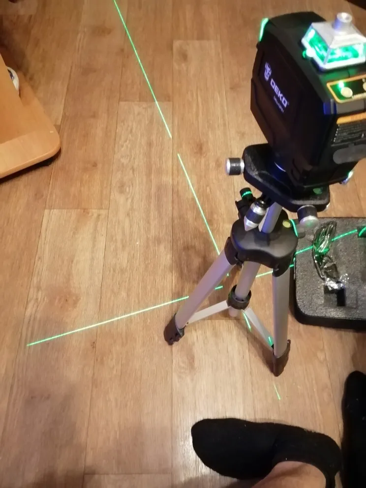 Доставка быстрая! Проверили по уровню по вертикали и горизонтали соответствует! Луч хотелось бы потоньше! Инструкции нет, есть ли фиксация под углом пока не знаю! С виду качественный товар, а там посмотрим!