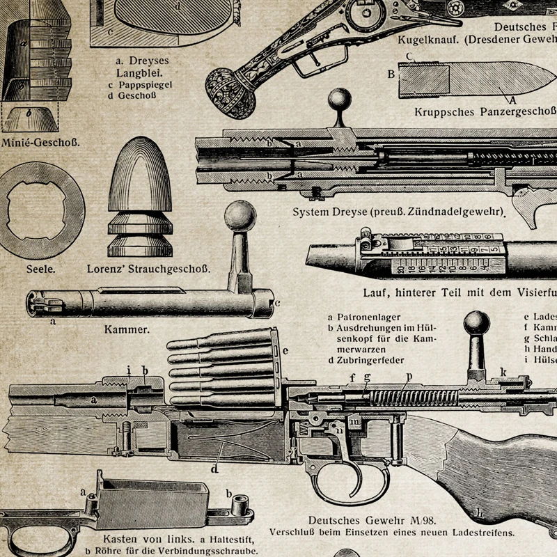 Винтажный пистолет с принтом оружие ручной пистолет винтовка машина пистолет иллюстрация постер мальчики подарок Искусство Холст Живопись Домашний Декор стены