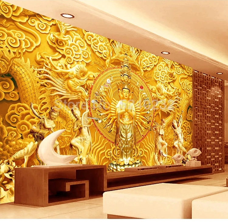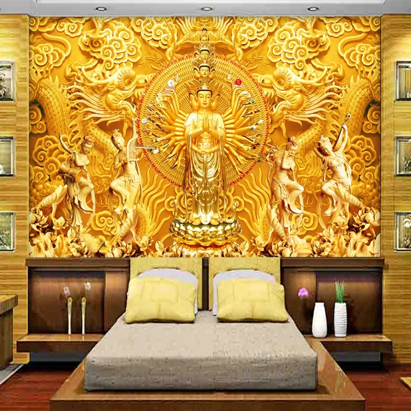 Настенные рулонные 3D-обои по фото по индивидуальному заказу, объемные стереоскопические обои с золотой статуей для гостиницы, зала, гостиной, настенные художественные обои для украшения дома