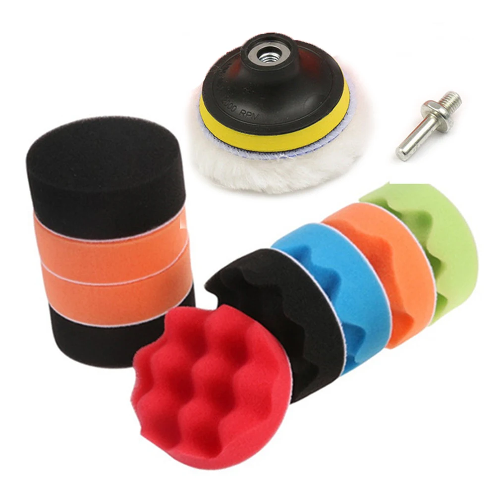 Комплект из 11 предметов, 3-дюймовая Губка для полировки автомобиля, автомобильная полировальная подушка + адаптер для дрели м10