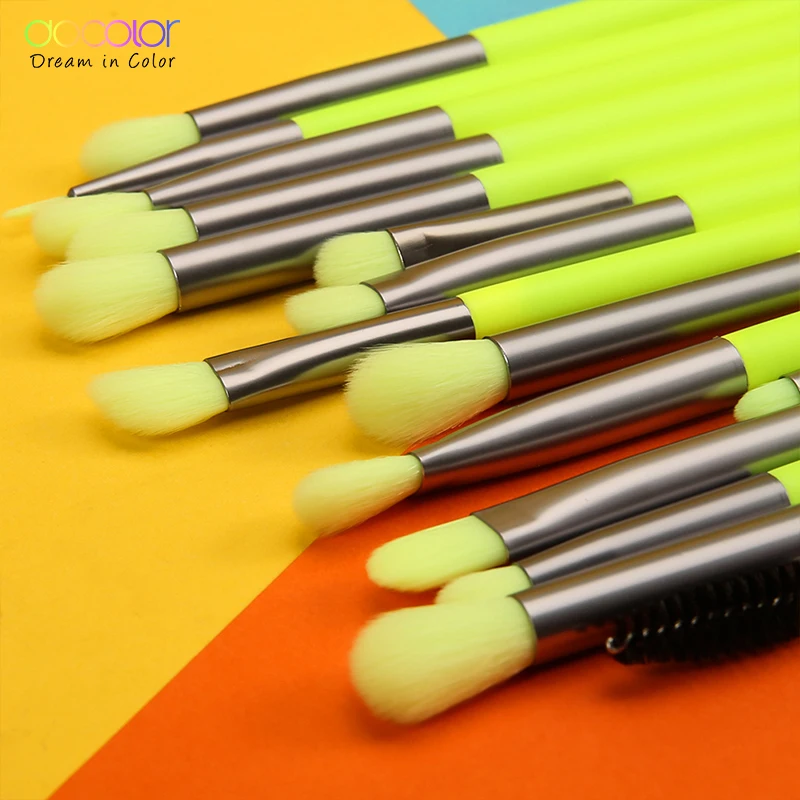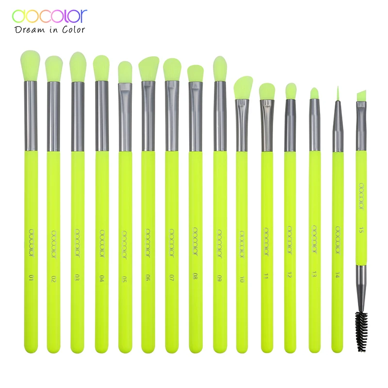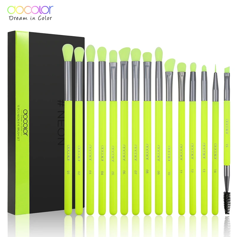 Набор неоновых кистей для макияжа Docolor, кисти для растушевки теней, подводки, макияжа, синтетические волосы, 15 шт.
