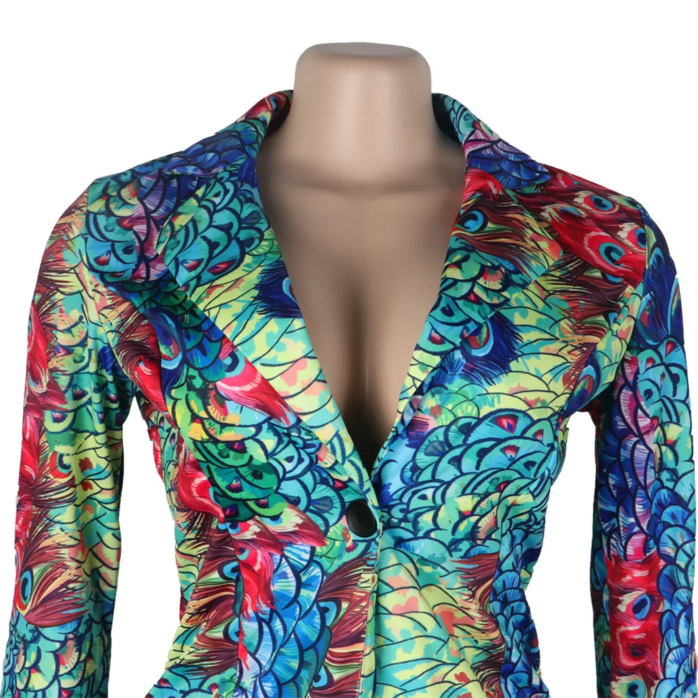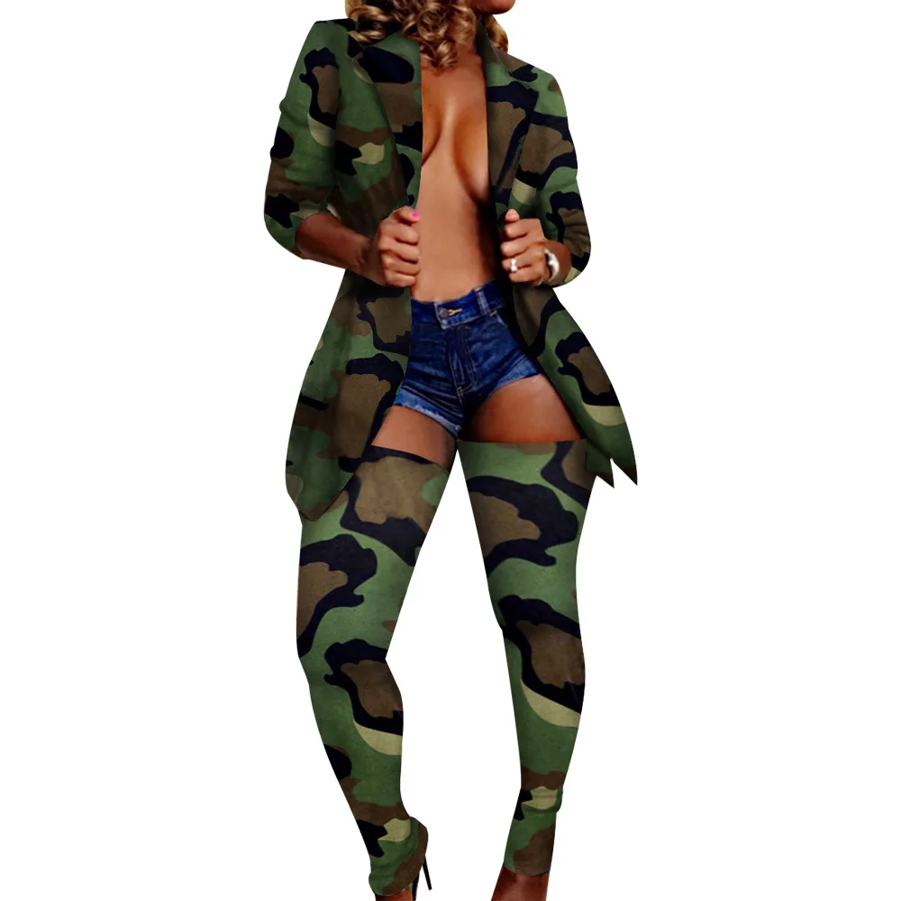Сексуальный блейзер с чулками, комплект из двух предметов, винтажный принт, отложной воротник, топ, пальто + леггинсы, женские комплекты, клубные вечерние костюмы
