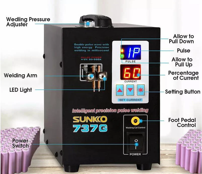Точечный сварочный аппарат SUNKKO 737G, импульсный точечный сварочный агрегат кВт, 18650, светодиодный светильник, аккумулятор, бесплатная доставка