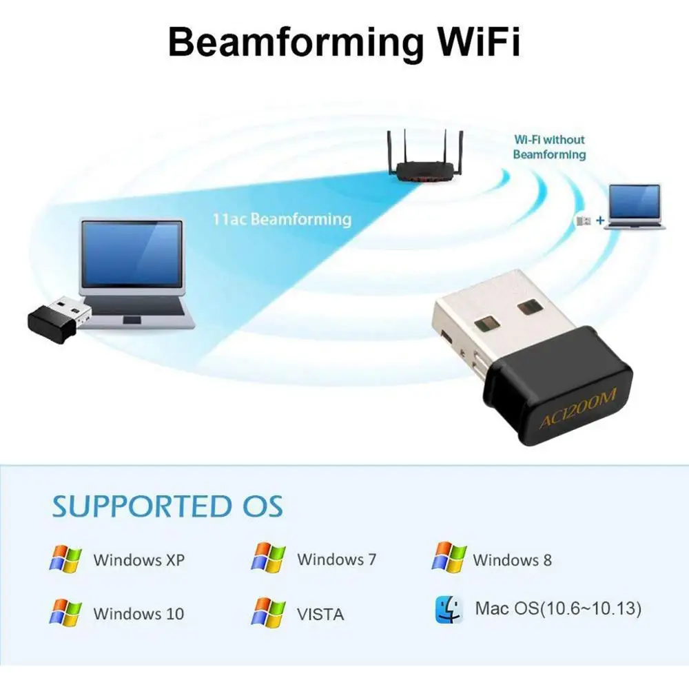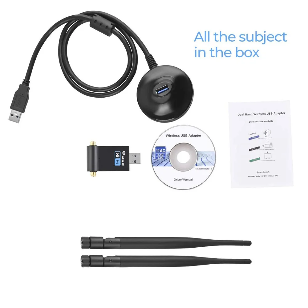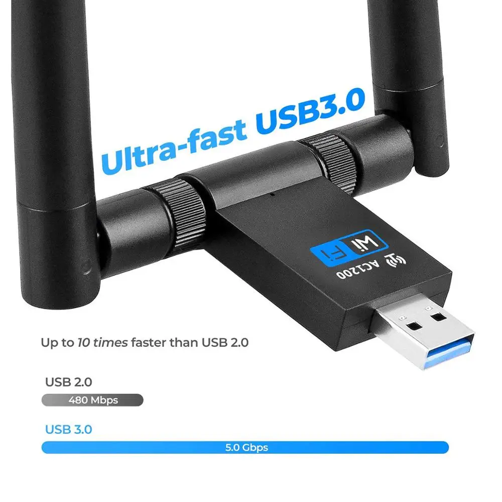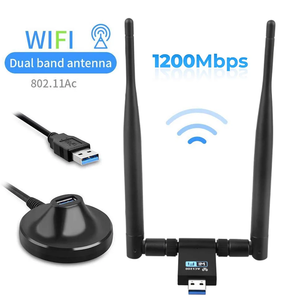Беспроводной WiFi адаптер 1200 Мбит/с USB3.0 WiFi донгл 2,4G/5G 802.11ac широкий диапазон стабильного сигнала сетевой адаптер с высоким коэффициентом усиления двойной 5dBi антенна поддержка Windows XP/10/8/8.1/7/Vista/2000,Mac 10,6-10,13