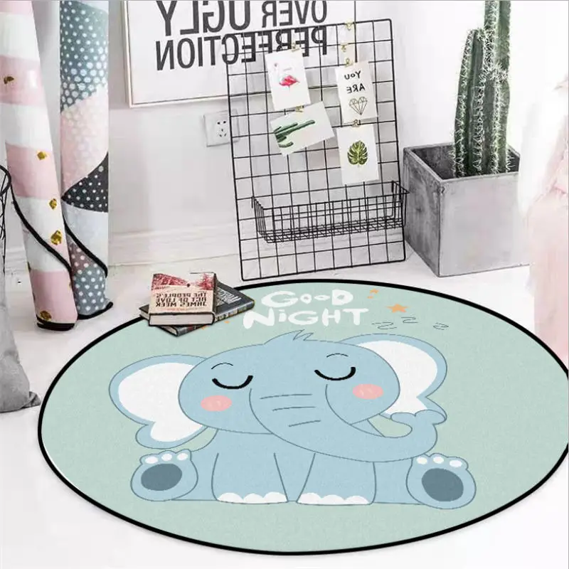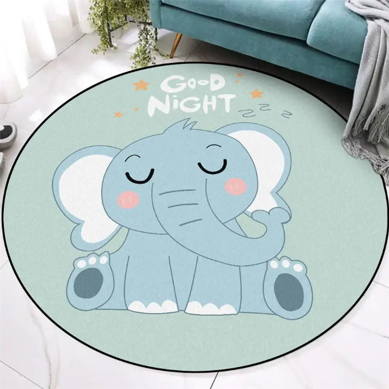 Милые Мультяшные круглые ковры для гостиной, коврик с узором в виде синего слона для спальни, декоративный коврик для спальни, детский игровой коврик