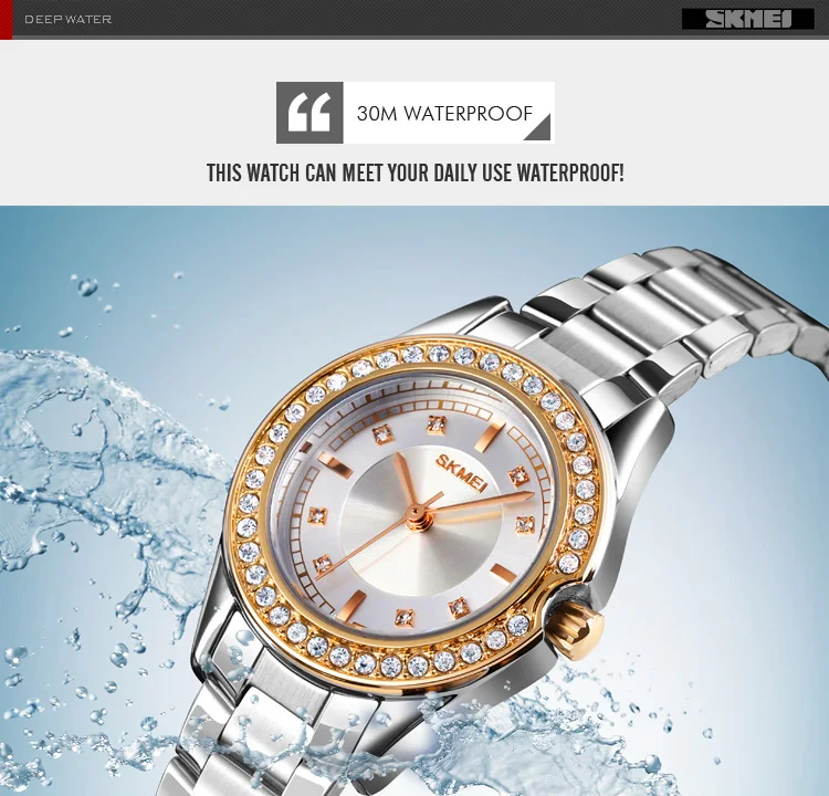 Женские кварцевые часы SKMEI, часы с браслетом из нержавеющей стали, водонепроницаемые, 1534