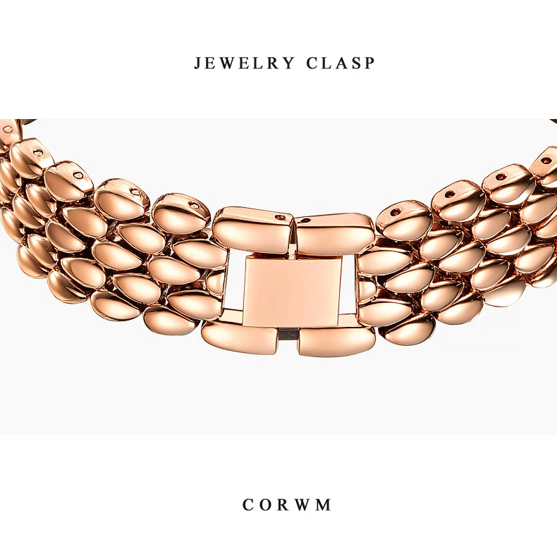 Женские кварцевые часы из нержавеющей стали под розовое золото